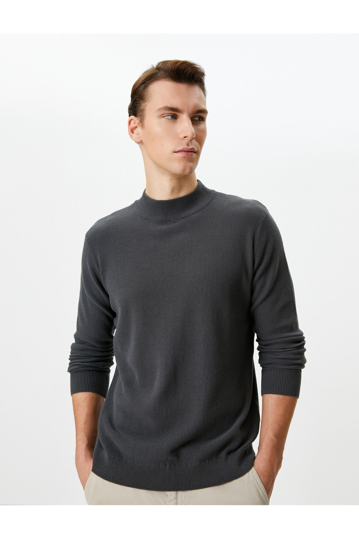 Yarım Balıkçı Yaka Kazak Triko Dokulu Uzun Kollu Pamuklu Yarım Balıkçı Yaka Kazak Triko Dokulu Uzun Kollu Pamuklu 4WAM70057HT L