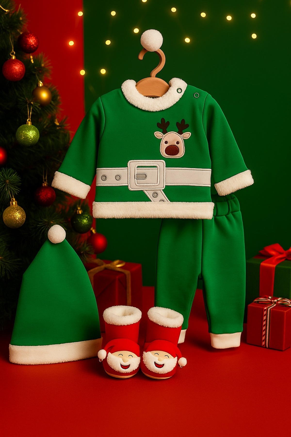 Geyikli Yılbaşı Unisex Tulum Geyikli Yılbaşı Unisex Tulum 2144AN-KIRMIZI 9 - 12 Ay