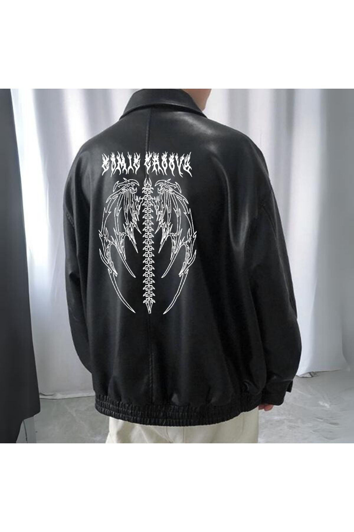 Morera Butik Gothic Angel Skeleton Baskılı Streetwear Siyah Oversize Unisex Astarlı Deri Ceket Morera Butik Gothic Angel Skeleton Baskılı Streetwear Siyah Oversize Unisex Astarlı Deri Ceket Mrr6302 XL