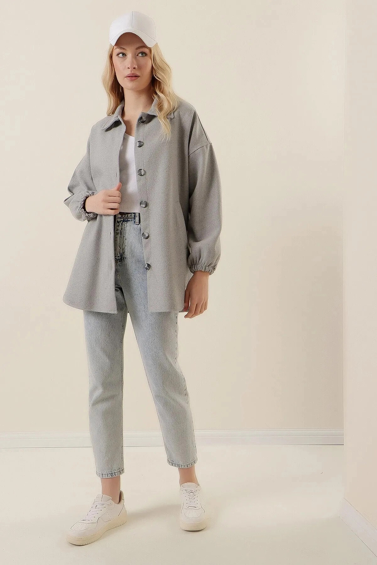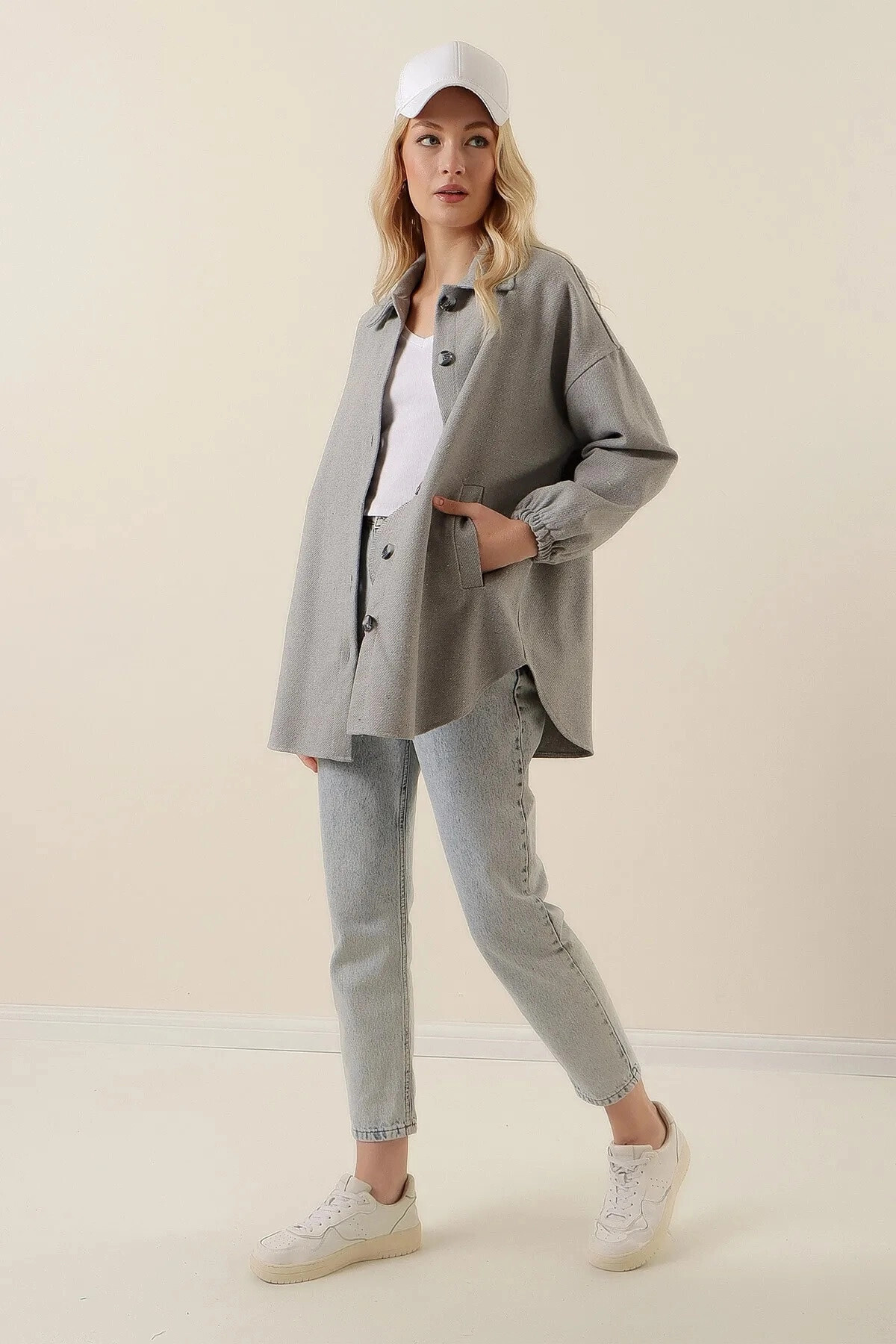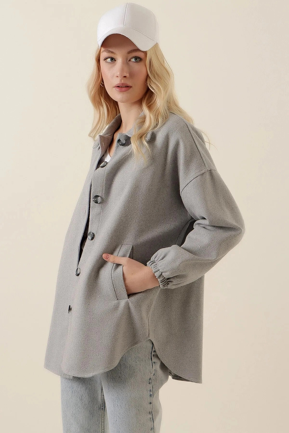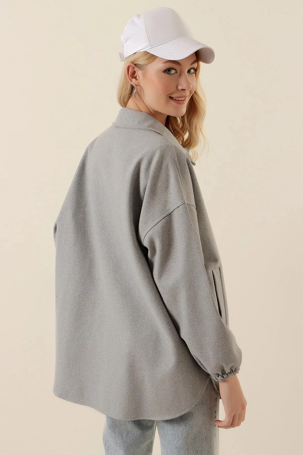 Kadın Açık Gri Cepli Düğme Kapamalı Geniş Kalıp Ceket HZL23W-BD106741 Kadın Açık Gri Cepli Düğme Kapamalı Geniş Kalıp Ceket HZL23W-BD106741 44