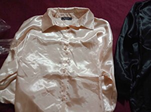 Kadın Hafif Dökümlü Saten Yüzeyli Gömlek Kadın Hafif Dökümlü Saten Yüzeyli Gömlek 0317kwassogom01 L