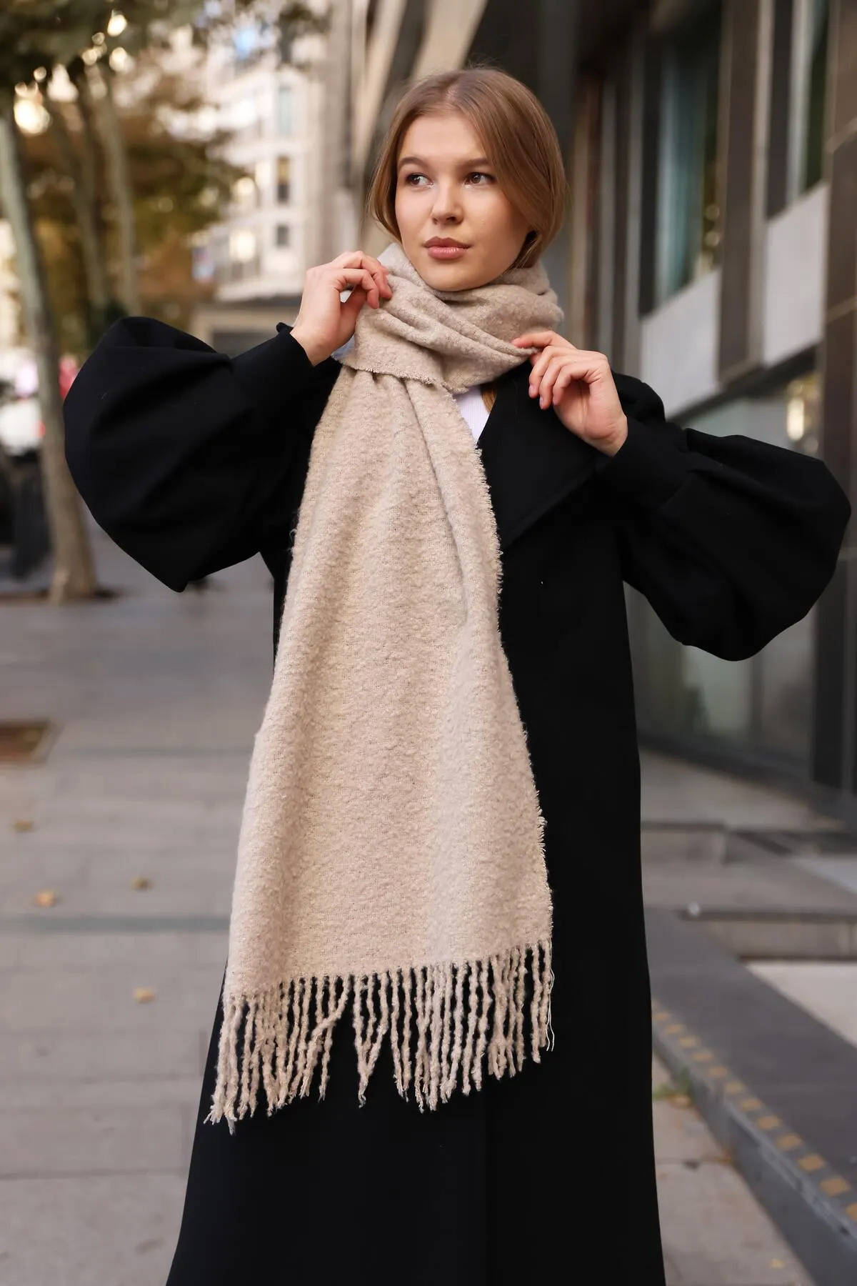 Püsküllü Buklet Atkı Şal 45X200 cm 1285 Ekru Püsküllü Buklet Atkı Şal 45X200 cm 1285 Ekru RSAL-1285 تک سایز