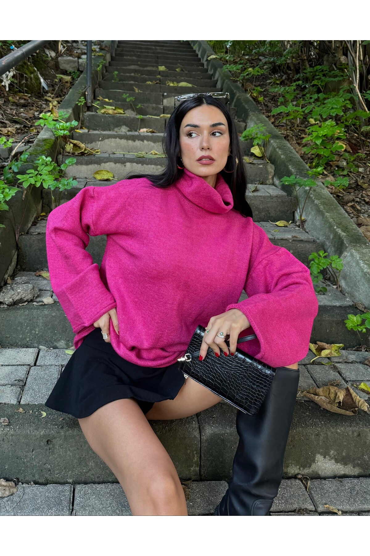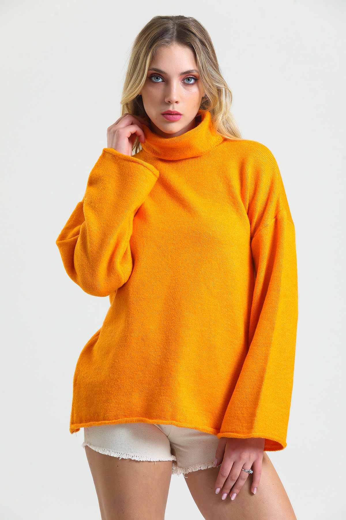 Nar Çiçeği Yumoş Oversize Balıkçı Yaka Triko Kazak 24309 Nar Çiçeği Yumoş Oversize Balıkçı Yaka Triko Kazak 24309 Standart