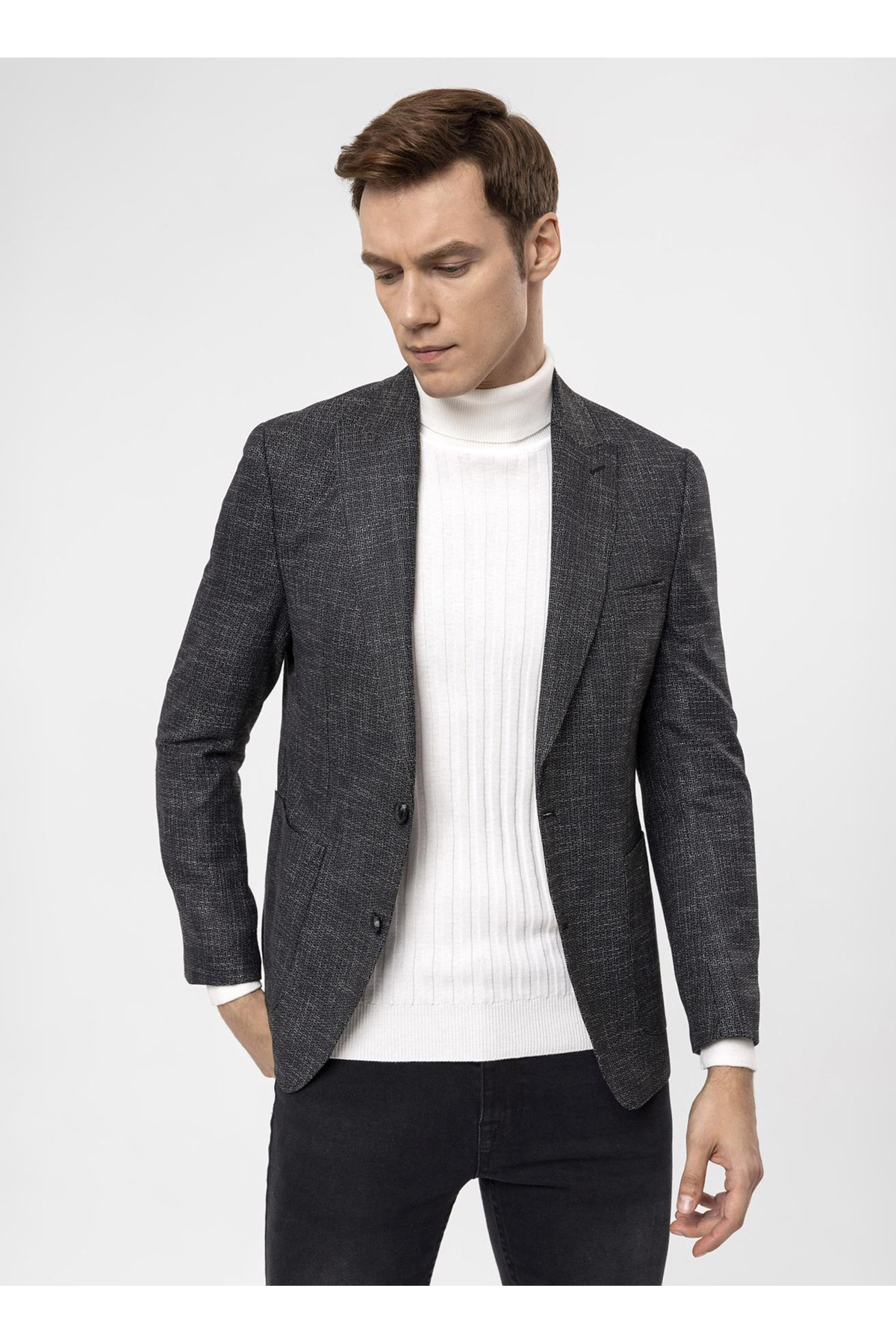 Süvari Slim Fit Siyah Erkek Armürlü Ceket CT2021600299 Süvari Slim Fit Siyah Erkek Armürlü Ceket CT2021600299 5003077676 56