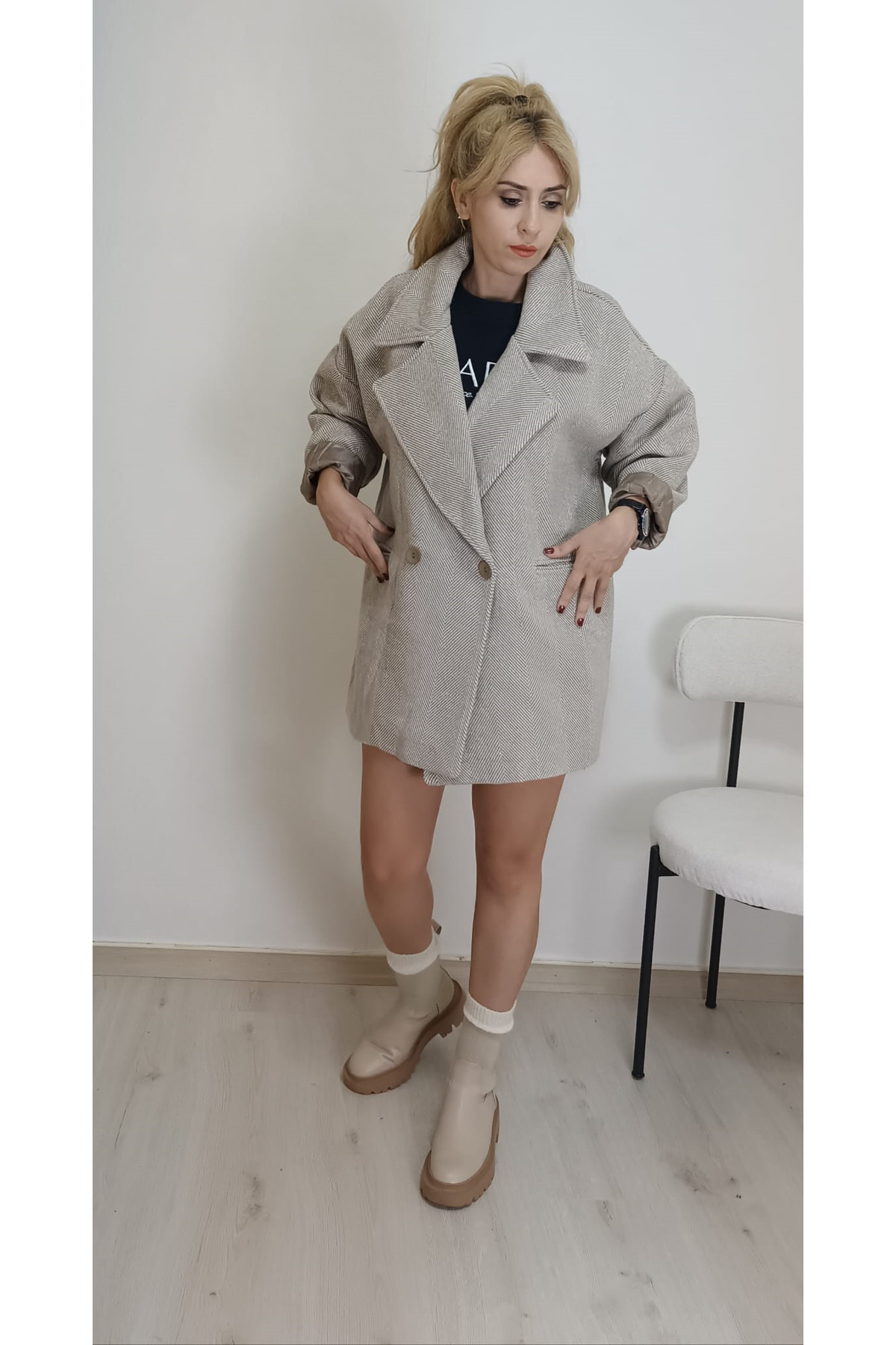 Kahverengi Balıksırtı Desen Oversize Kaşe Astarlı Kaban Kahverengi Balıksırtı Desen Oversize Kaşe Astarlı Kaban LTSMNT20230001-01 Standart