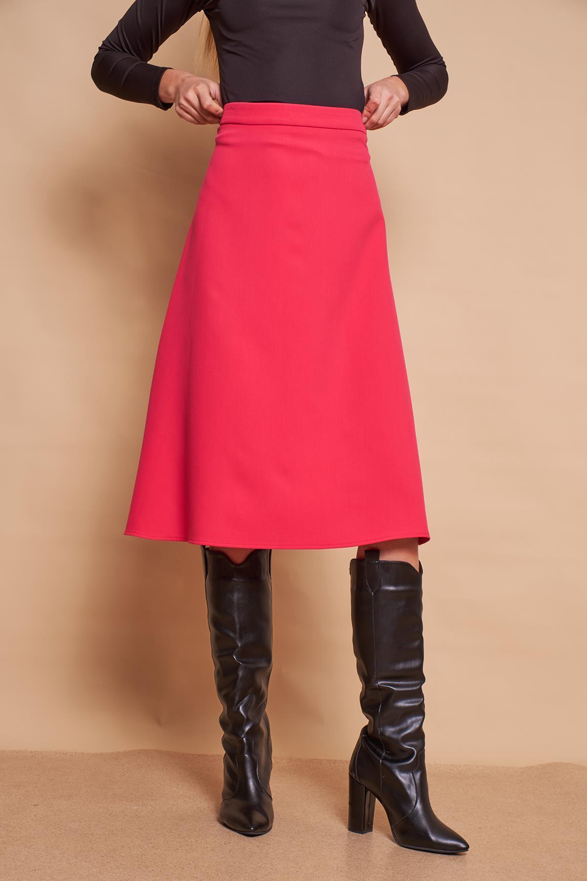 Kadın Yüksek Bel Diz Altı Hafif Likralı Kumaş Çan Etek-Fujya Kadın Yüksek Bel Diz Altı Hafif Likralı Kumaş Çan Etek-Fujya 100076 42