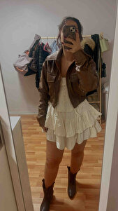 Kadın Deri Oversize Astarlı Kol Çıt Çıt Düğmeli Deri Mont Fermuar Kapamalı Kolej Mont Kahve Kadın Deri Oversize Astarlı Kol Çıt Çıt Düğmeli Deri Mont Fermuar Kapamalı Kolej Mont Kahve 38018 XL