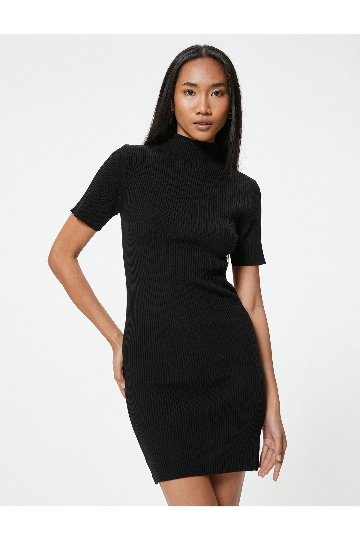 Siyah Triko Elbise Yarasa Kol Kayık Yaka Siyah Triko Elbise Yarasa Kol Kayık Yaka E232018 XL