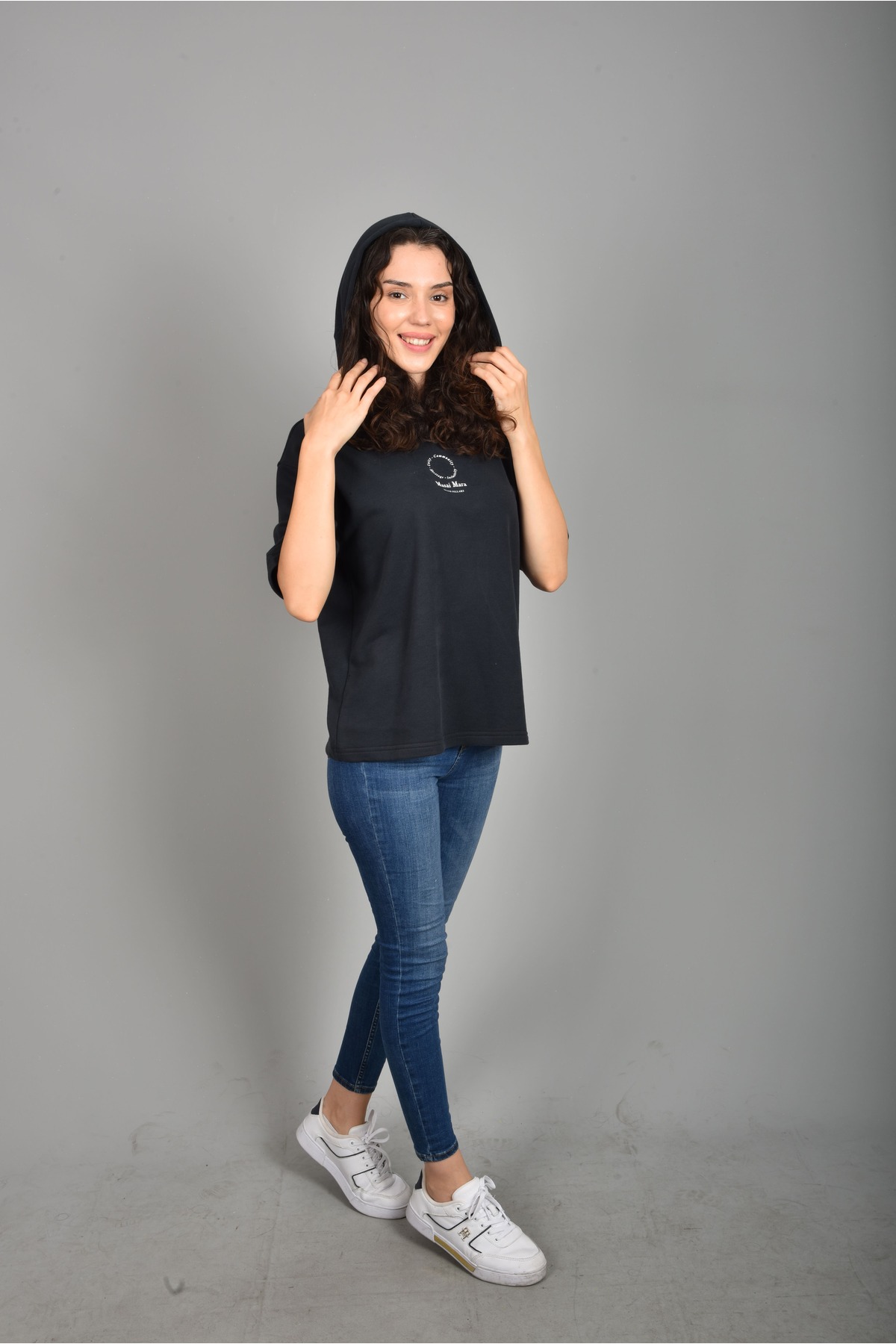 Kısa Kollu Spor Sweatshirt Kapüşonlu Beli Bağlama Detaylı Kanguru Cepli Modal Kumaş Kısa Kollu Spor Sweatshirt Kapüşonlu Beli Bağlama Detaylı Kanguru Cepli Modal Kumaş 4SAK10122NK XL