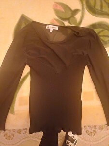 Tül Detaylı Bluz Kalp Yaka Uzun Kollu Yuvarlak Yaka Tül Detaylı Bluz Kalp Yaka Uzun Kollu Yuvarlak Yaka 4WAL60138IK XL