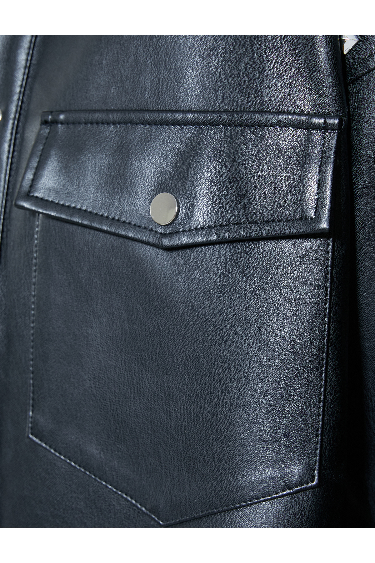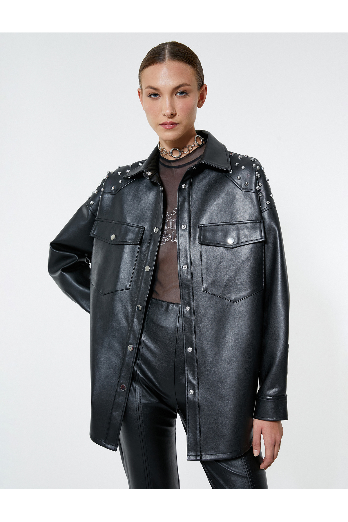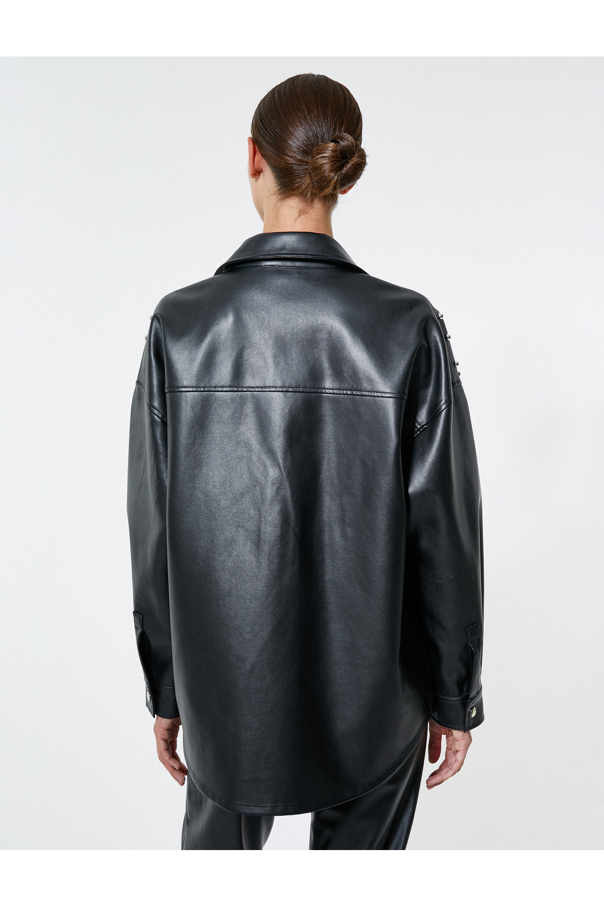 Suni Deri Gömlek Ceket Zımba Detaylı Suni Deri Gömlek Ceket Zımba Detaylı 4WAK20133EW 42