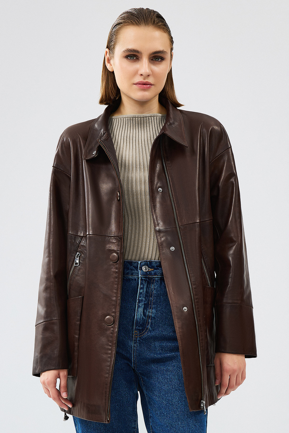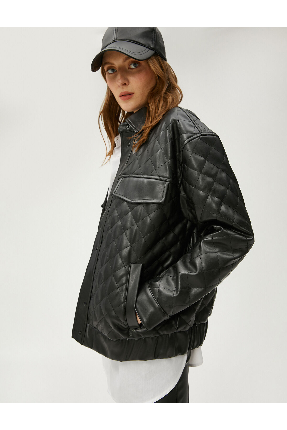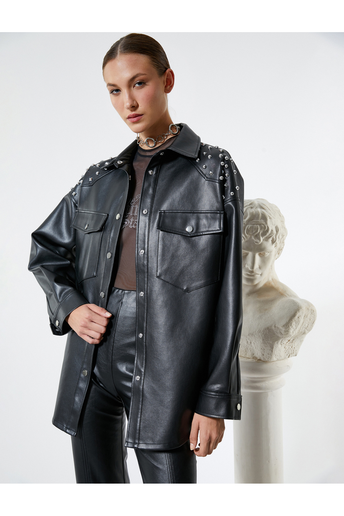 Suni Deri Gömlek Ceket Zımba Detaylı Suni Deri Gömlek Ceket Zımba Detaylı 4WAK20133EW 42