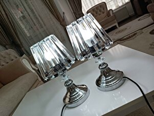 Taşlı Abajur 2'Lİ Kristal Gövdeli Gümüş Salon Yatak Odası Abajur Taşlı Abajur 2'Lİ Kristal Gövdeli Gümüş Salon Yatak Odası Abajur E526 تک سایز