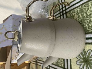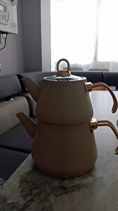 Granit Kaplama Gold Kulplu Cam Kapak Çaydanlık Krem Granit Kaplama Gold Kulplu Cam Kapak Çaydanlık Krem Krem-Gold تک سایز