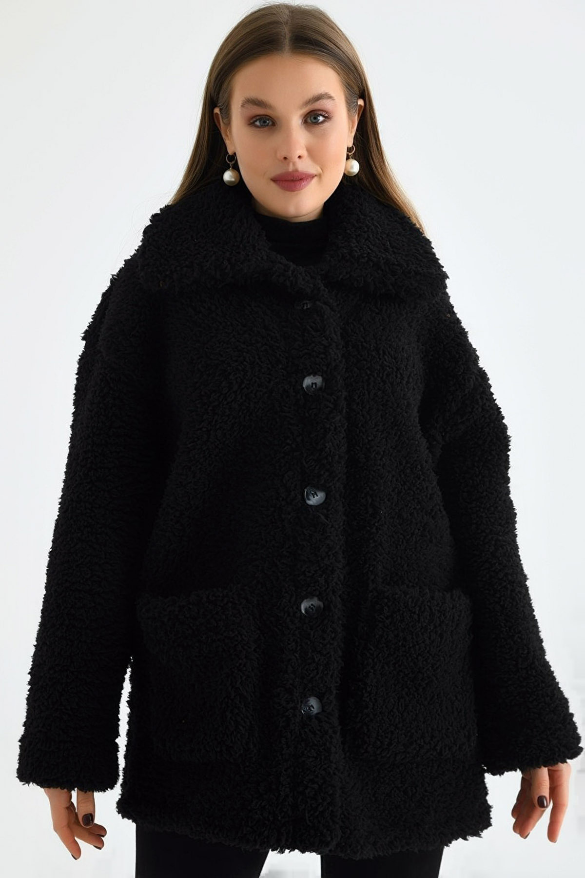 Kadın Gömlek Geniş Yaka Önü Düğmeli Büyük Cepli Peluş Yumuşak Mont Kadın Gömlek Geniş Yaka Önü Düğmeli Büyük Cepli Peluş Yumuşak Mont NLRU-1433 Standart