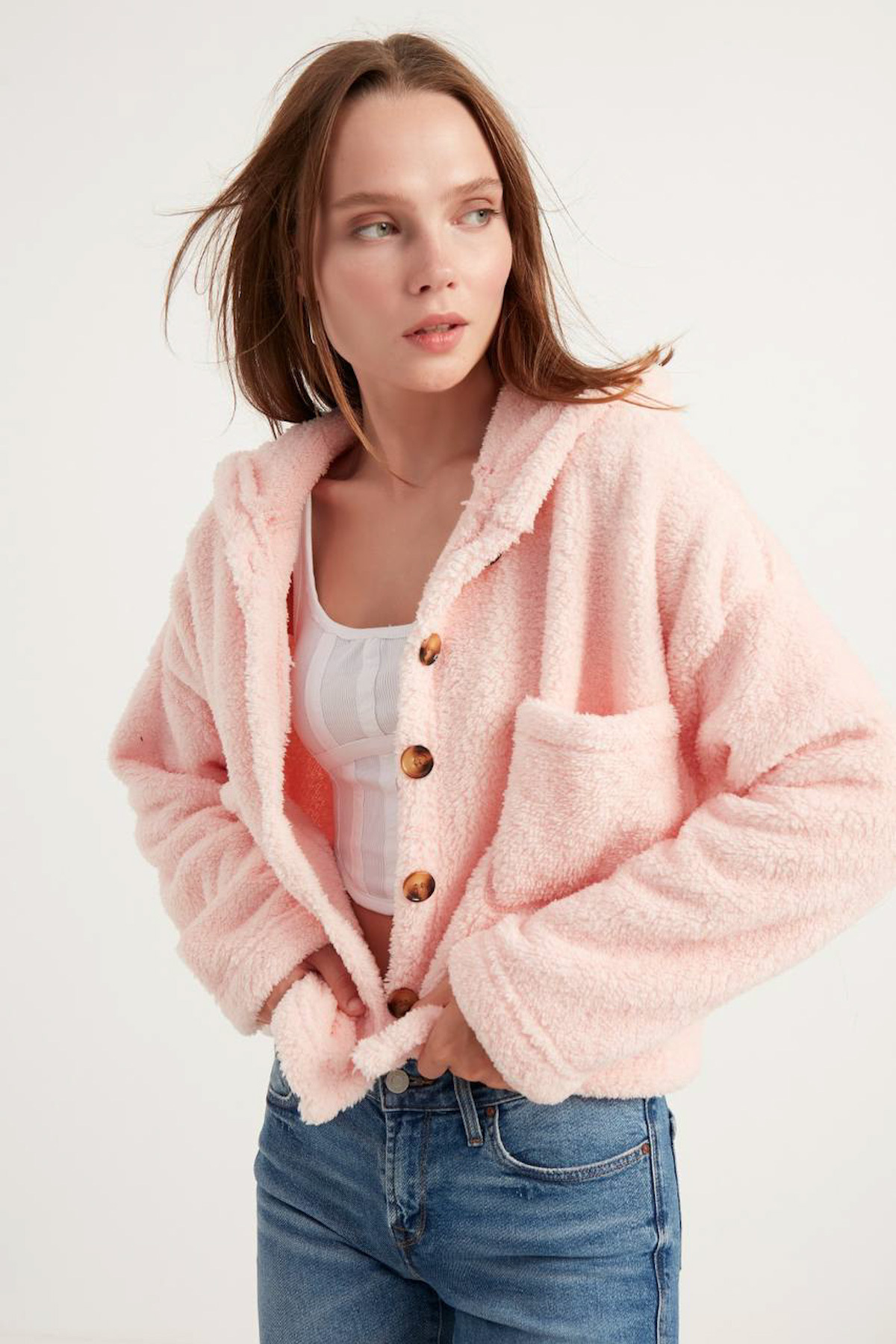 Yeni Sezon Peluş Kıvırcık Crop Kapşonlu Mont Pudra Yeni Sezon Peluş Kıvırcık Crop Kapşonlu Mont Pudra KVRCK1067 42