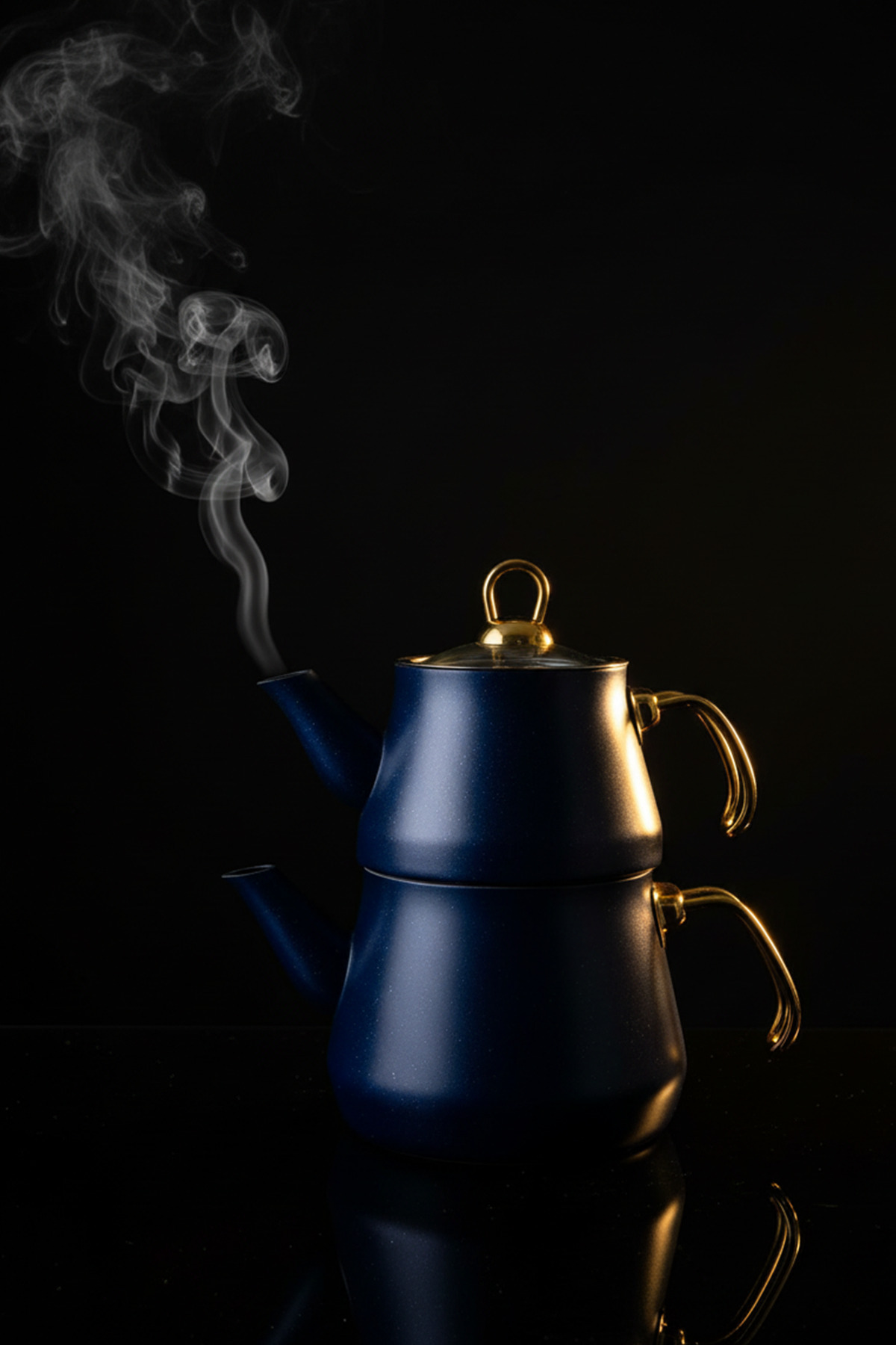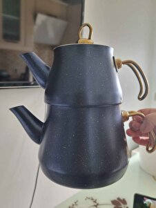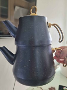 Granit Kaplama Gold Kulplu Cam Kapak Çaydanlık Mavi Granit Kaplama Gold Kulplu Cam Kapak Çaydanlık Mavi Krem-Gold تک سایز