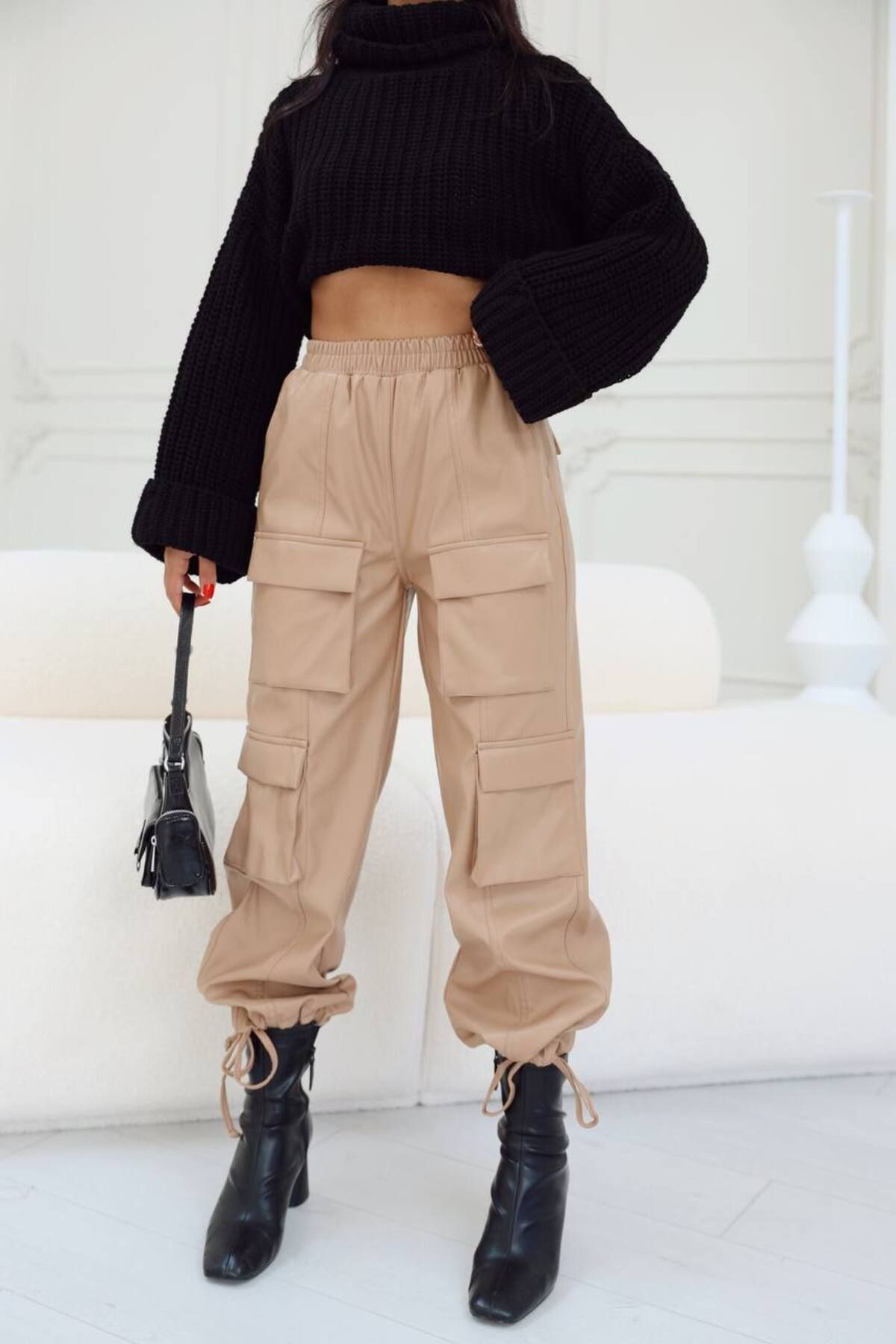 İçi Şardonlu Kargo Cepli Palazzo Deri Pantolon İçi Şardonlu Kargo Cepli Palazzo Deri Pantolon ceyss1000 XL