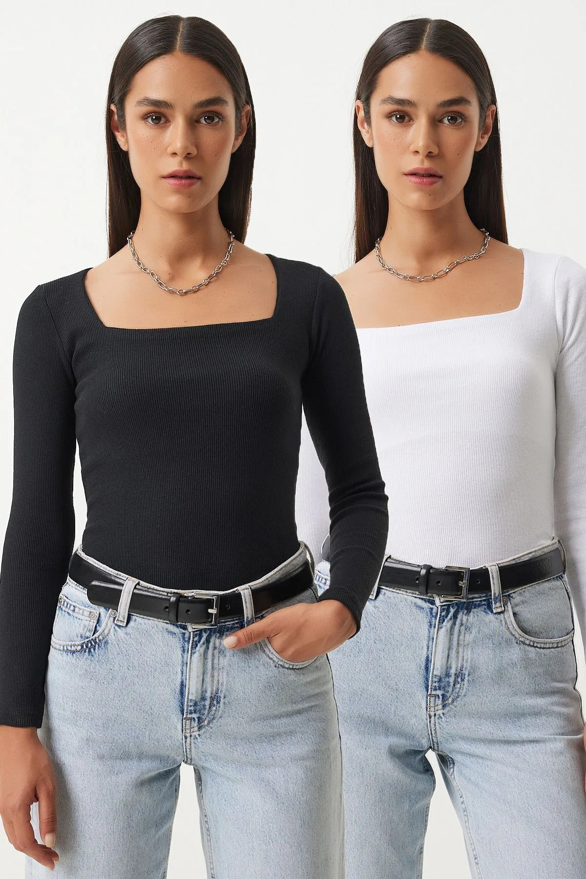 Kadın Kare Yaka Uzun Kol Bluz-body Yeşil Kadın Kare Yaka Uzun Kol Bluz-body Yeşil ESP4503-001 XL