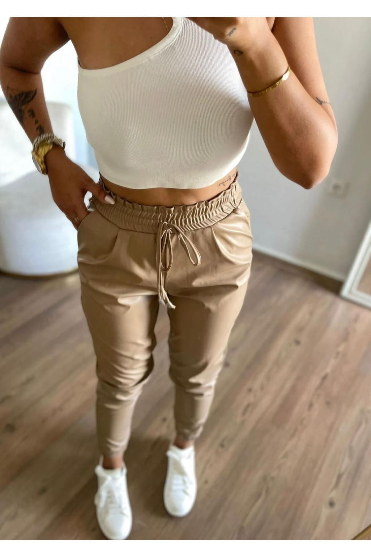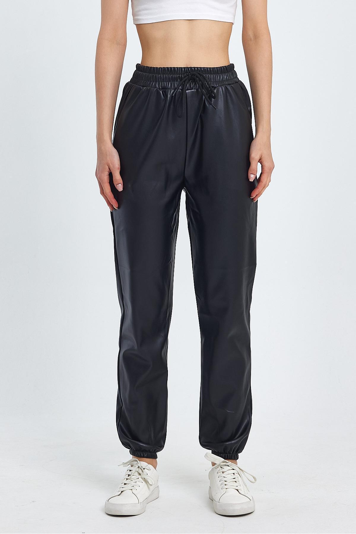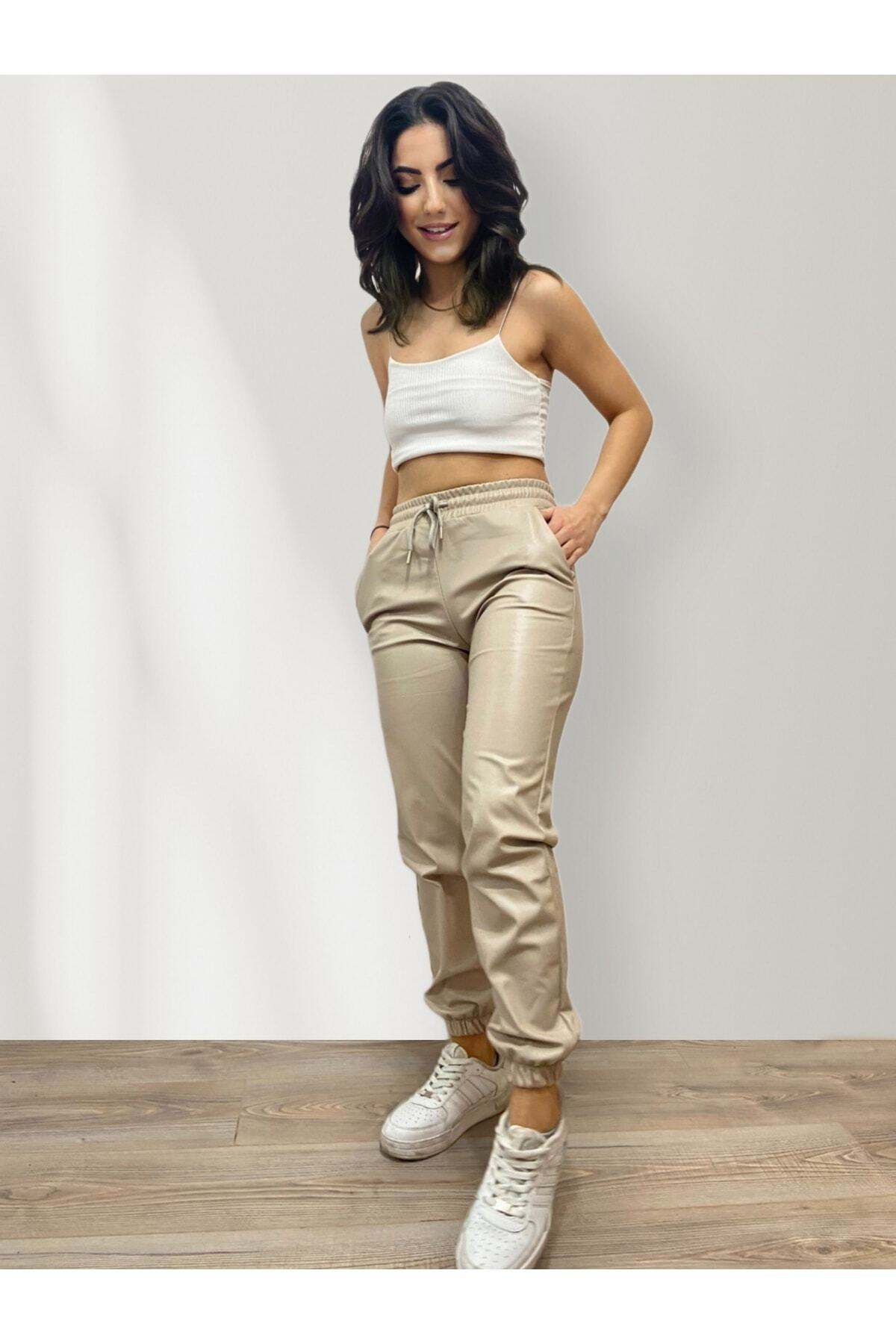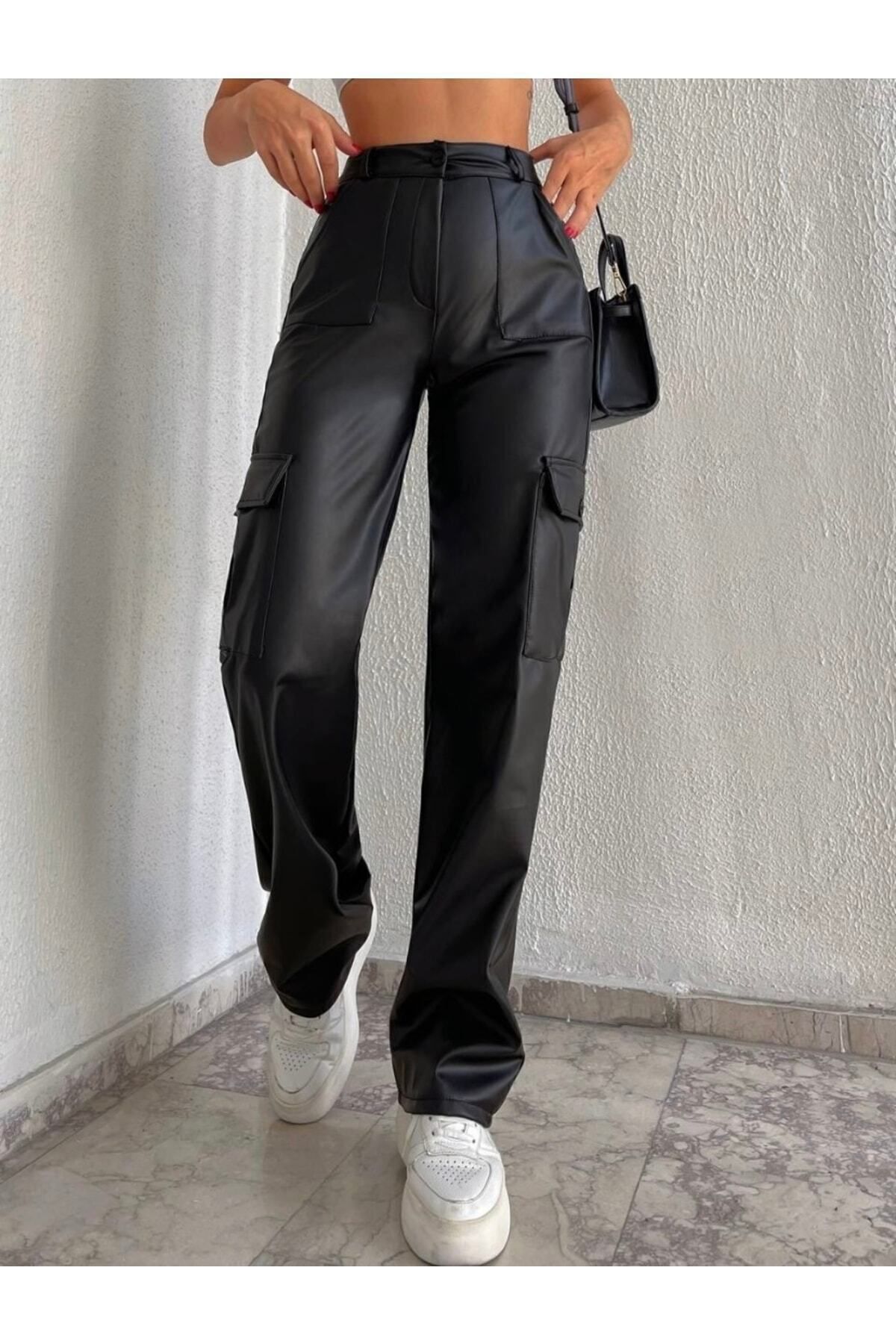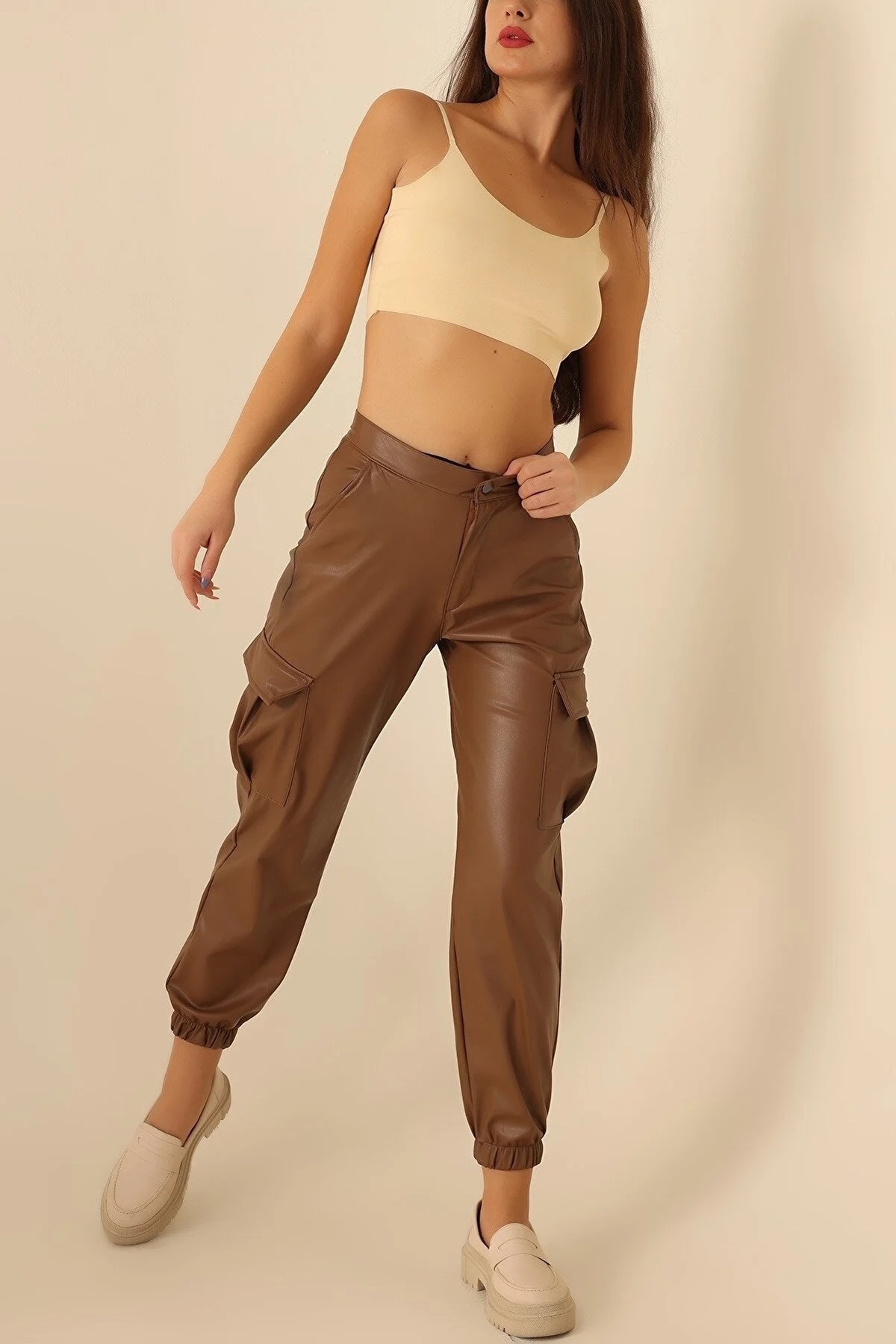 Kadın İçi Kadife Kaplı Kargo Cepli Full Esnek Paçası Lastikli Deri Pantolon Kadın İçi Kadife Kaplı Kargo Cepli Full Esnek Paçası Lastikli Deri Pantolon SWANA555 M