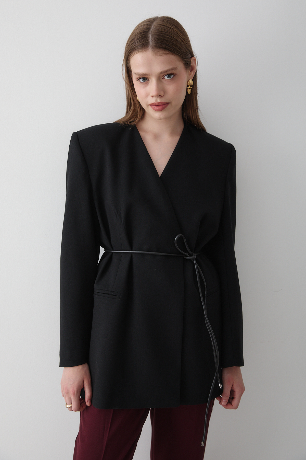 Kadın Kruvaze Crop Blazer Ceket Siyah Kadın Kruvaze Crop Blazer Ceket Siyah ckt-100 L