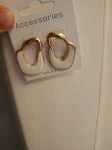 Asimetrik Beyaz Mineli Altın Renk Küpe Asimetrik Beyaz Mineli Altın Renk Küpe LB10168 تک سایز