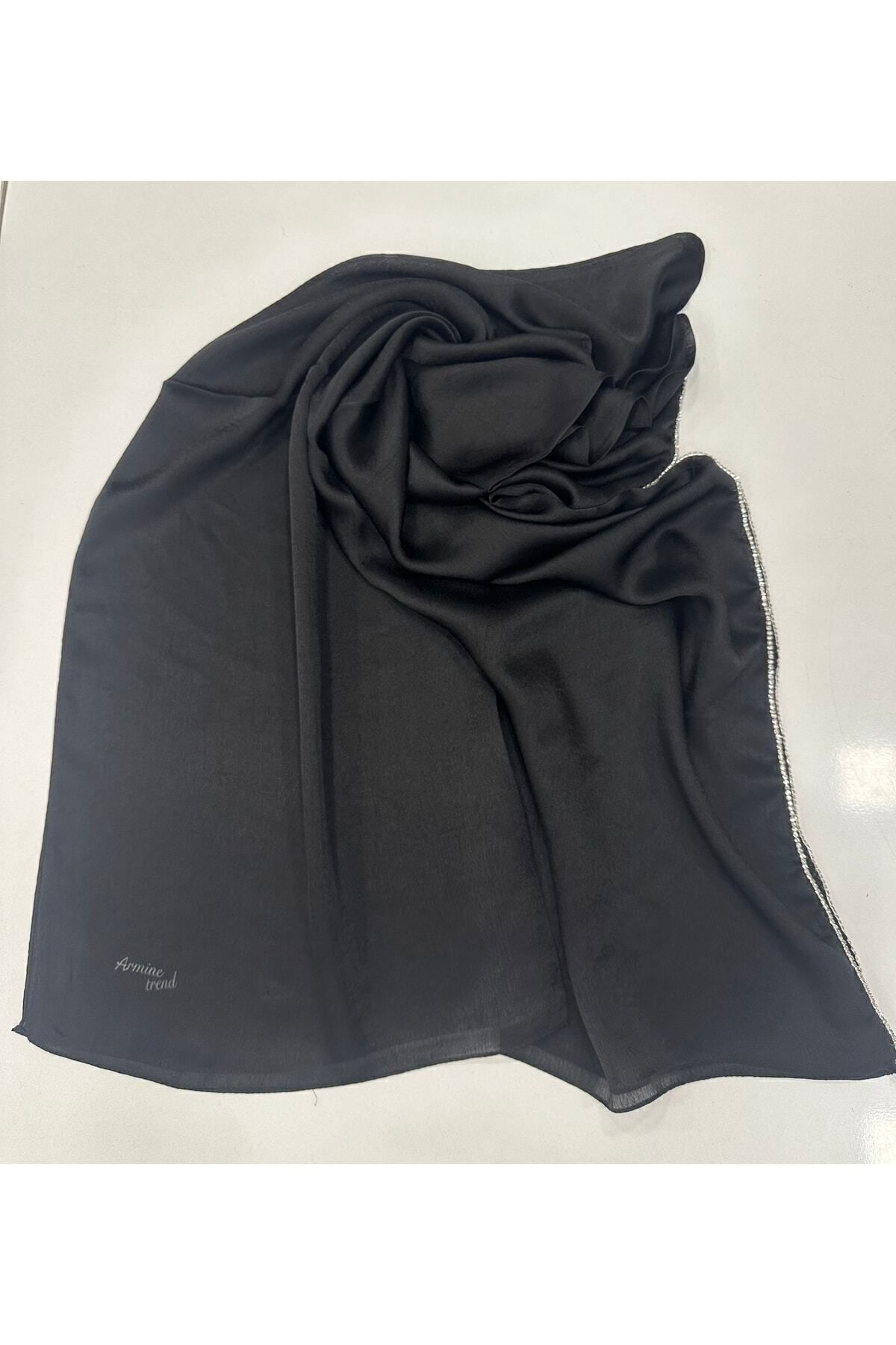 Siyah Krep Şifon Kumaş El İşlemesi ile Şerit Taşlı ve Organze Detaylı Lüks Şal Siyah Krep Şifon Kumaş El İşlemesi ile Şerit Taşlı ve Organze Detaylı Lüks Şal gülsemalişal7 80 x 200