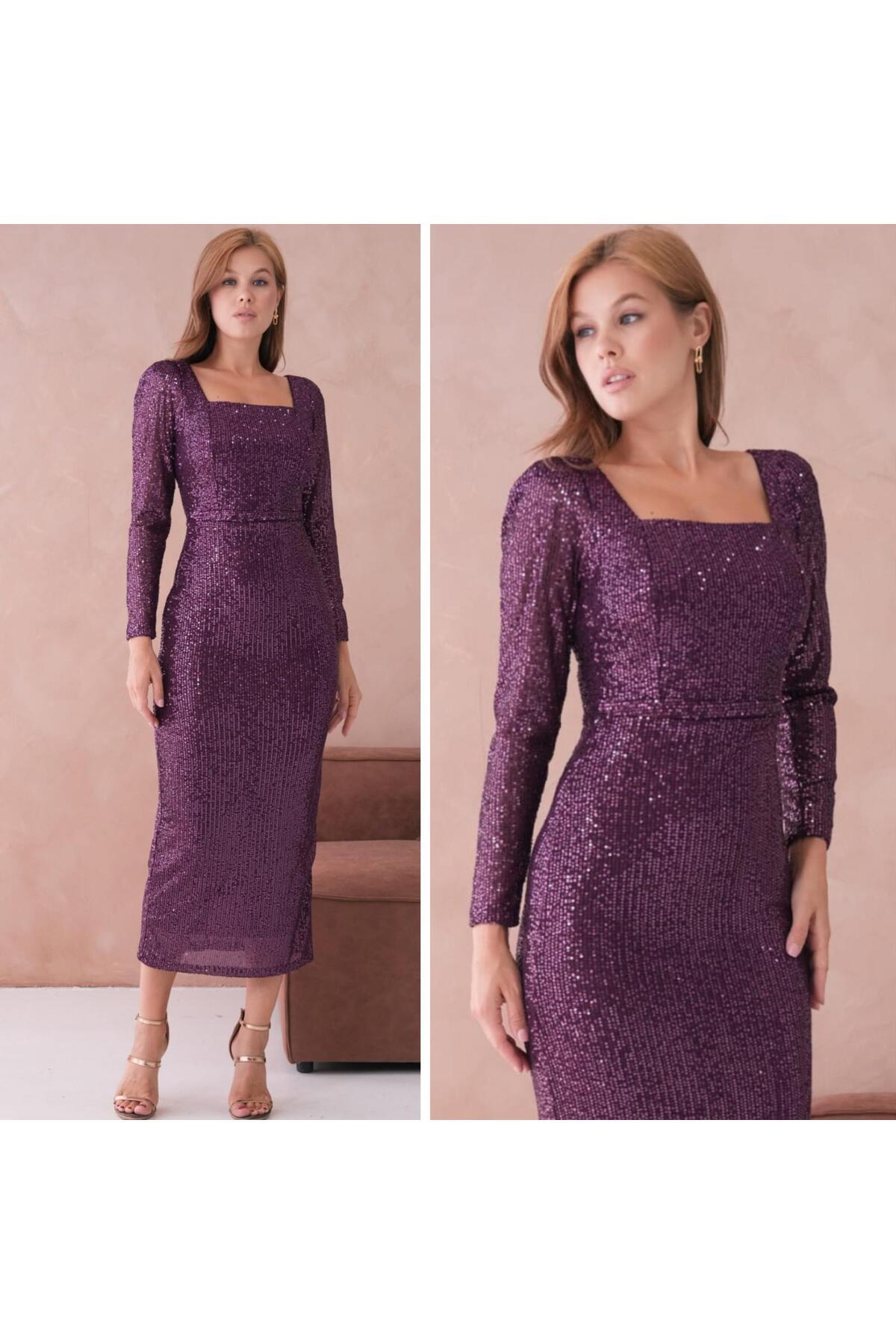 Kadın Lila Kruvaze Yaka Pul Payet Tasarım Büyük Beden Abiye Elbise Kadın Lila Kruvaze Yaka Pul Payet Tasarım Büyük Beden Abiye Elbise ELBISEDELISISTN-452 50