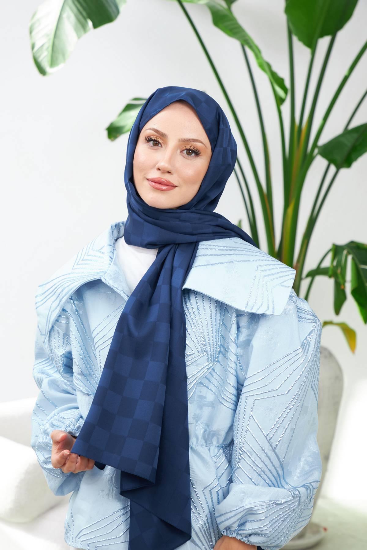Yeni Dama Desen İpeksi Jakar Şal Lacivert 9007-19 Yeni Dama Desen İpeksi Jakar Şal Lacivert 9007-19 75 x 195