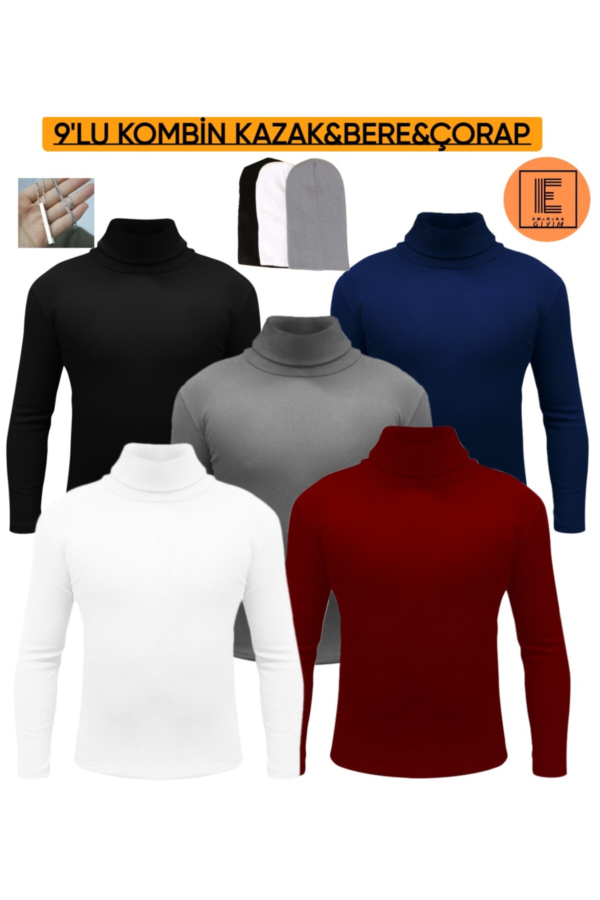 8'li kombin balıkçı yaka boğazlı kazak bere çorap 8'li kombin balıkçı yaka boğazlı kazak bere çorap sr1 2XL