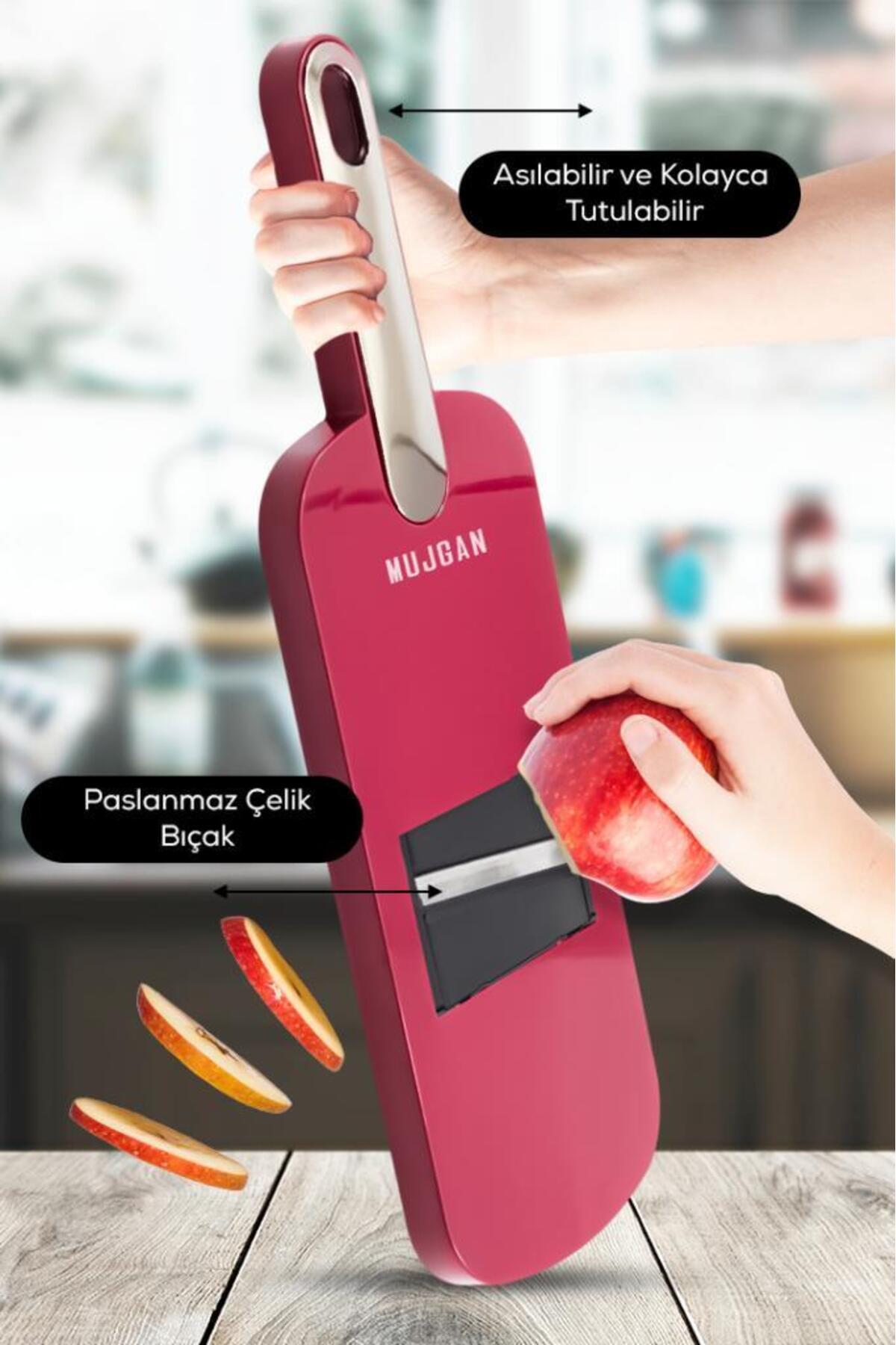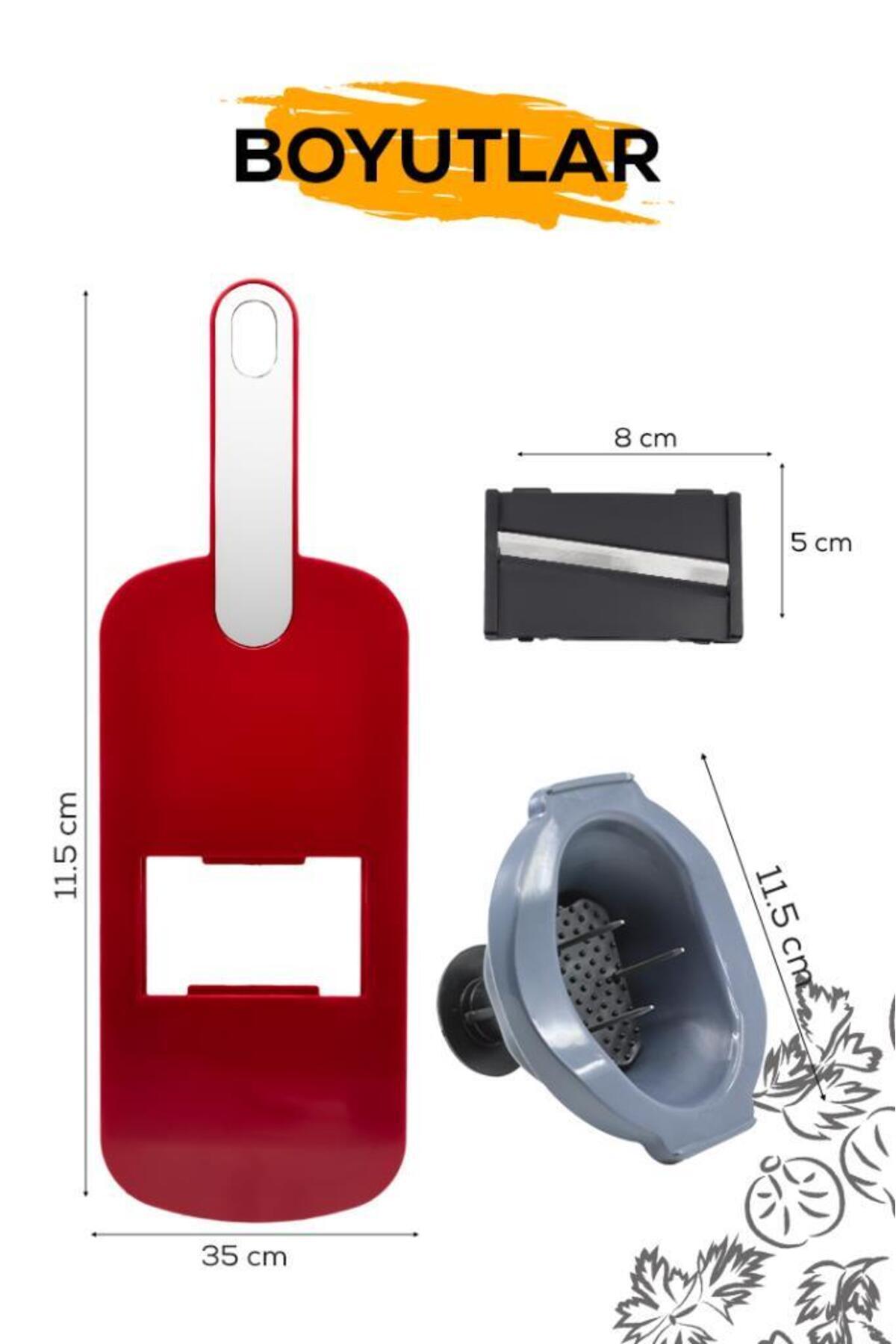 مشخصات فنی 5 Başlıklı Meyve Sebze Dilimleyici Mutfak için Çok İşlevli Rende KIRMIZI جنس پلاستیک Bakım Talimatları (Gıda Temas) Ürünün kullanım ömrünü korumak için ürüne özel bakım talimatlarını takip ediniz. مشخصات کلی