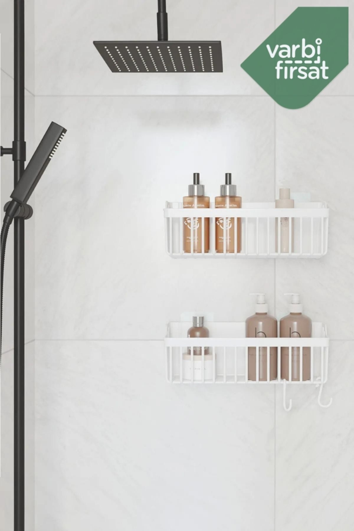 Yapışkanlı Banyo Rafı, 2'li Banyo Düzenleyici, Duş Rafı Organizer Şampuanlık, Plastik Yapışkanlı Banyo Rafı, 2'li Banyo Düzenleyici, Duş Rafı Organizer Şampuanlık, Plastik VARBRAF01 تک سایز