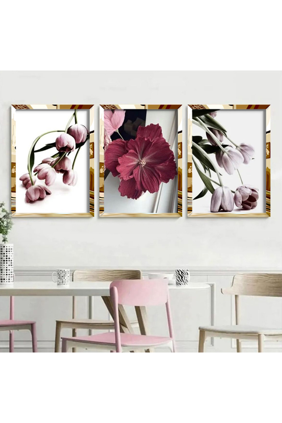 Soyut Çiçekler Üçlü Kanvas Tablo Seti - Krem Pembe ve Gold Soyut Çiçekler Üçlü Kanvas Tablo Seti - Krem Pembe ve Gold SAS3231042789 60 x 90