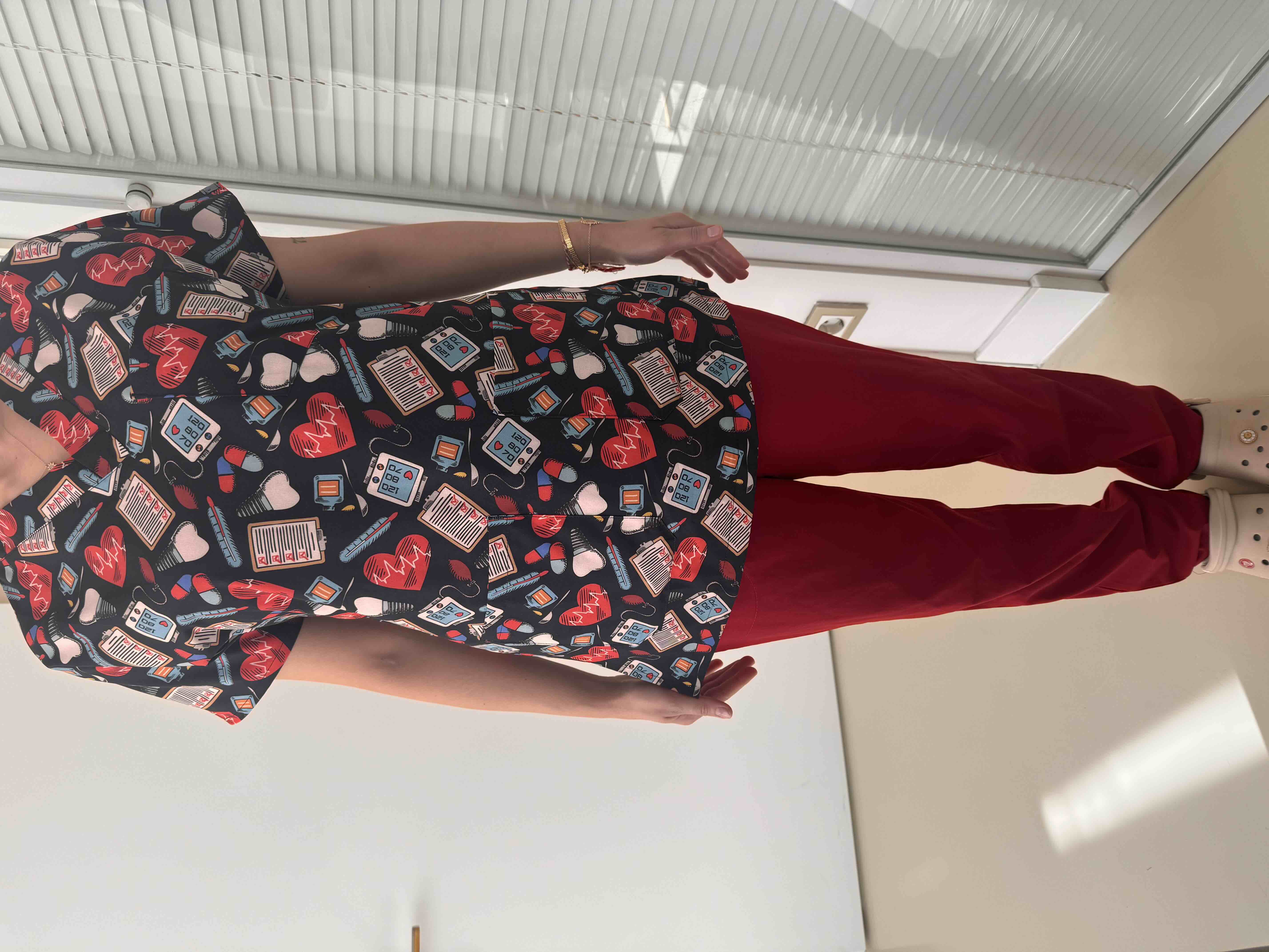 Koyu Reçete Desenli Likralı Kumaş Cerrahi Tek Üst V Yaka Forma Koyu Reçete Desenli Likralı Kumaş Cerrahi Tek Üst V Yaka Forma P434S7829 2XL