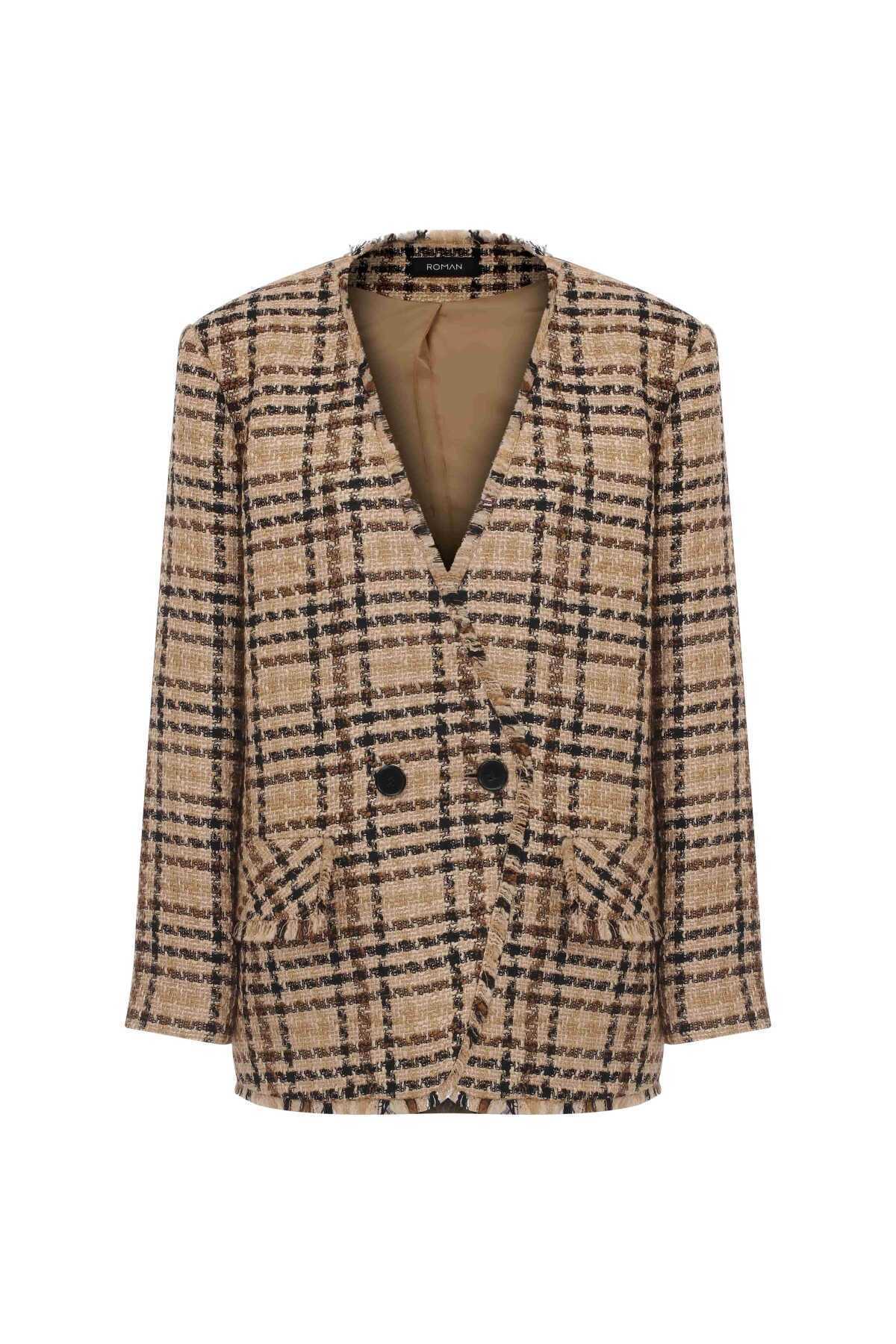 Ekoseli Tüvit Kruvaze Kadın Ceket Standart Renk Y2316034_089 Ekoseli Tüvit Kruvaze Kadın Ceket Standart Renk Y2316034_089 4da4-10035 42