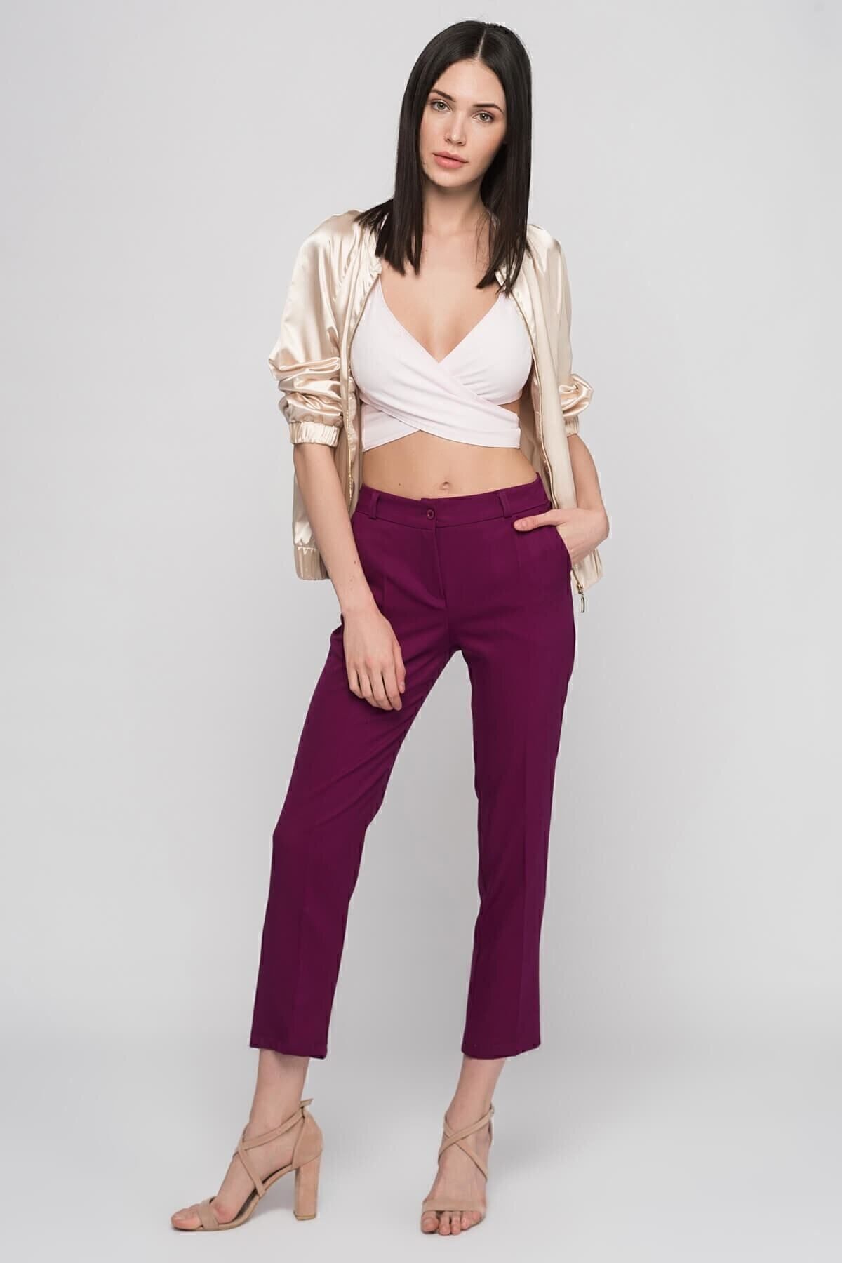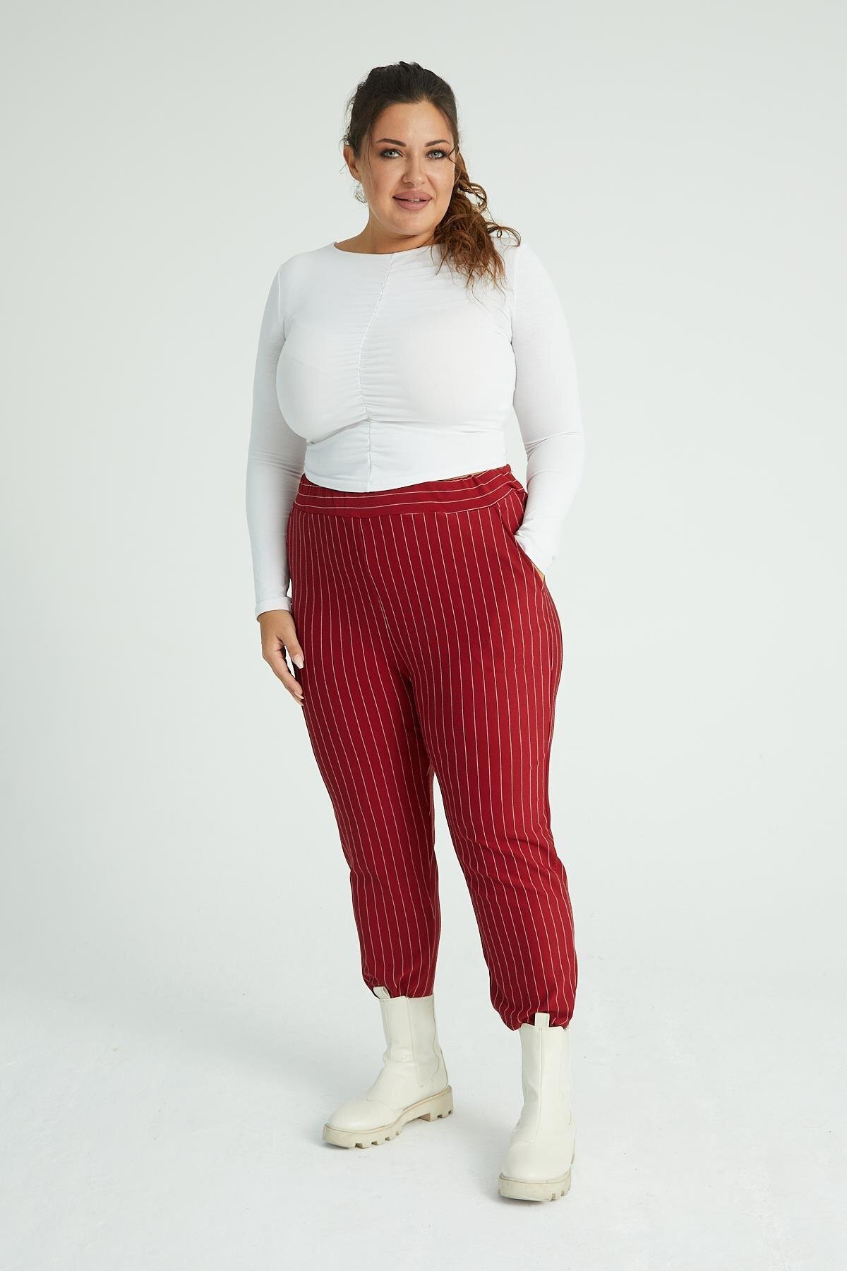 Kadın Bordo Beyaz Çizgili Esnek Krep Kumaş Pantolon Kadın Bordo Beyaz Çizgili Esnek Krep Kumaş Pantolon 2391101 52-54