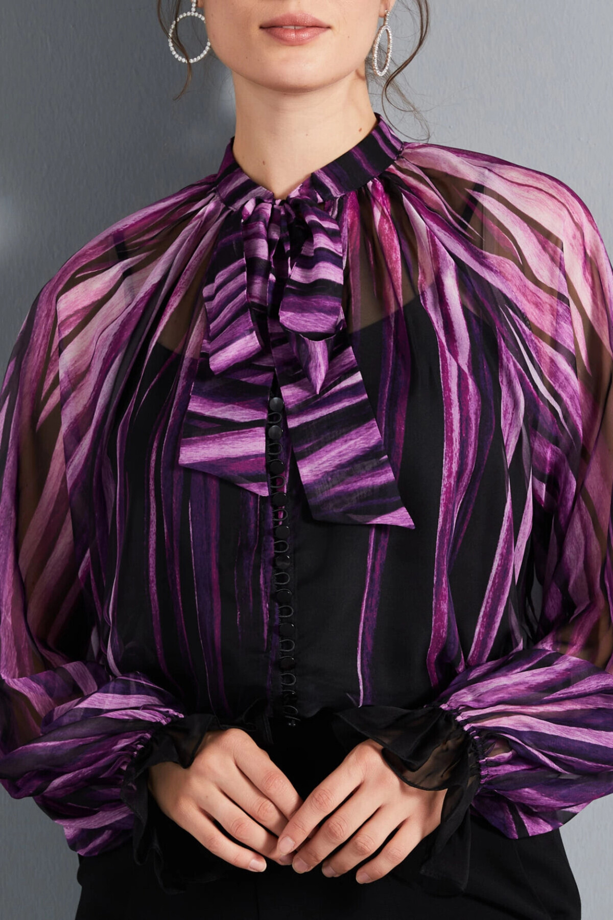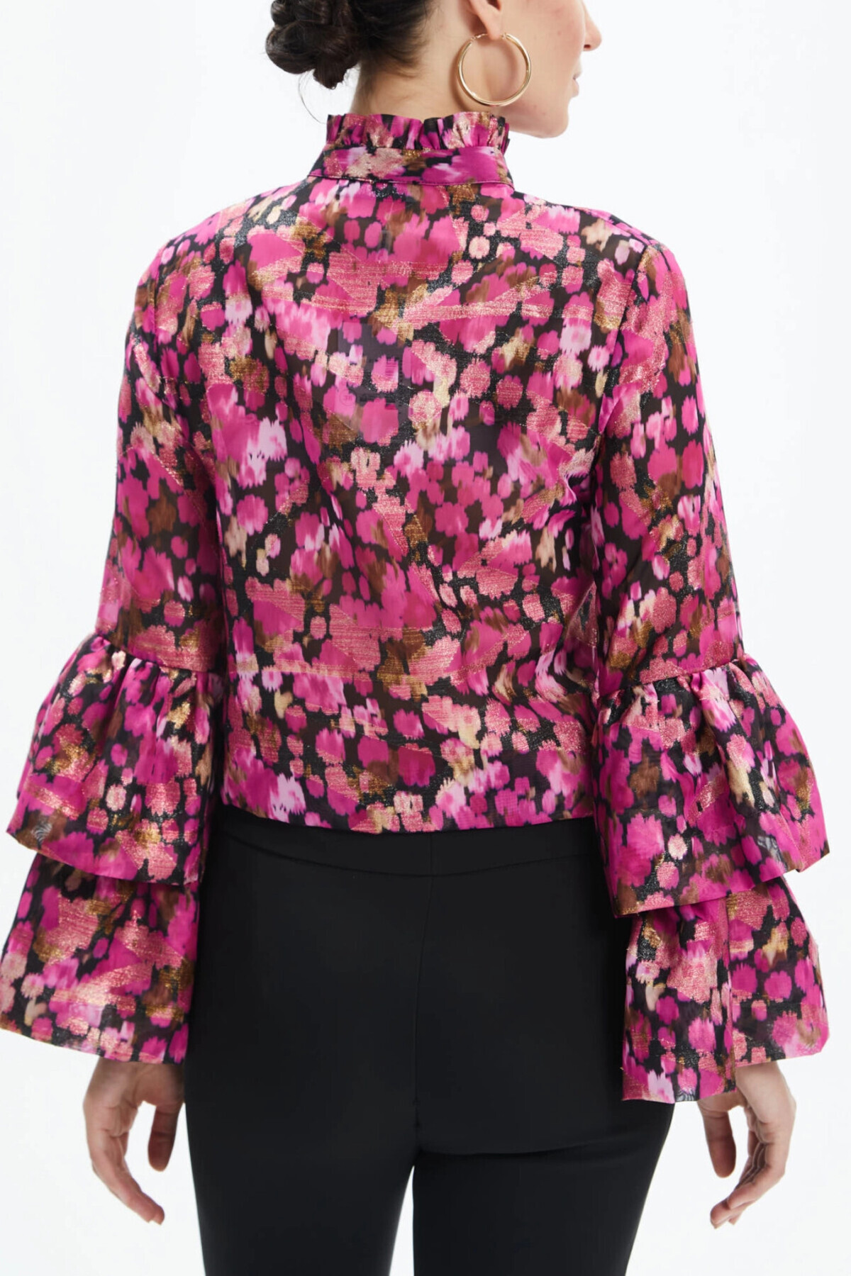 Çiçek Desenli Volan Kollu Fırfırlı Yaka Şifon Fuşya Gömlek 39282 Çiçek Desenli Volan Kollu Fırfırlı Yaka Şifon Fuşya Gömlek 39282 2420139282-320 44