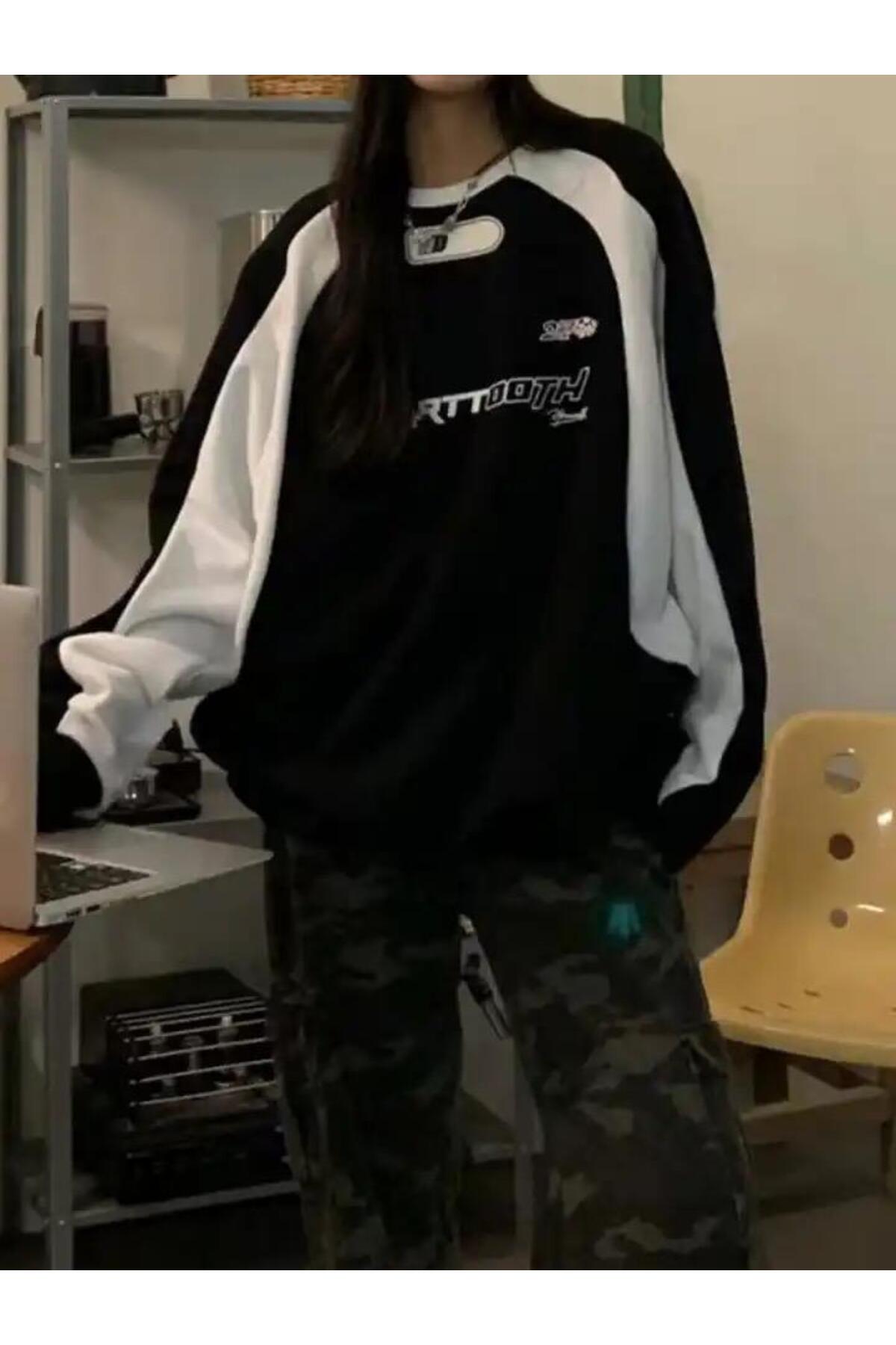 Siyah Beyaz Detay Secret Şardonlu Sweatshirt Siyah Beyaz Detay Secret Şardonlu Sweatshirt EFBUTIK13064 XL