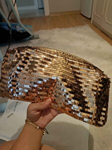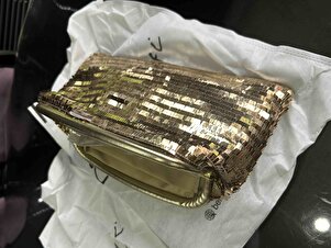Gold Payetli Clutch Abiye Çanta Gold Payetli Clutch Abiye Çanta 0847BR23 تک سایز