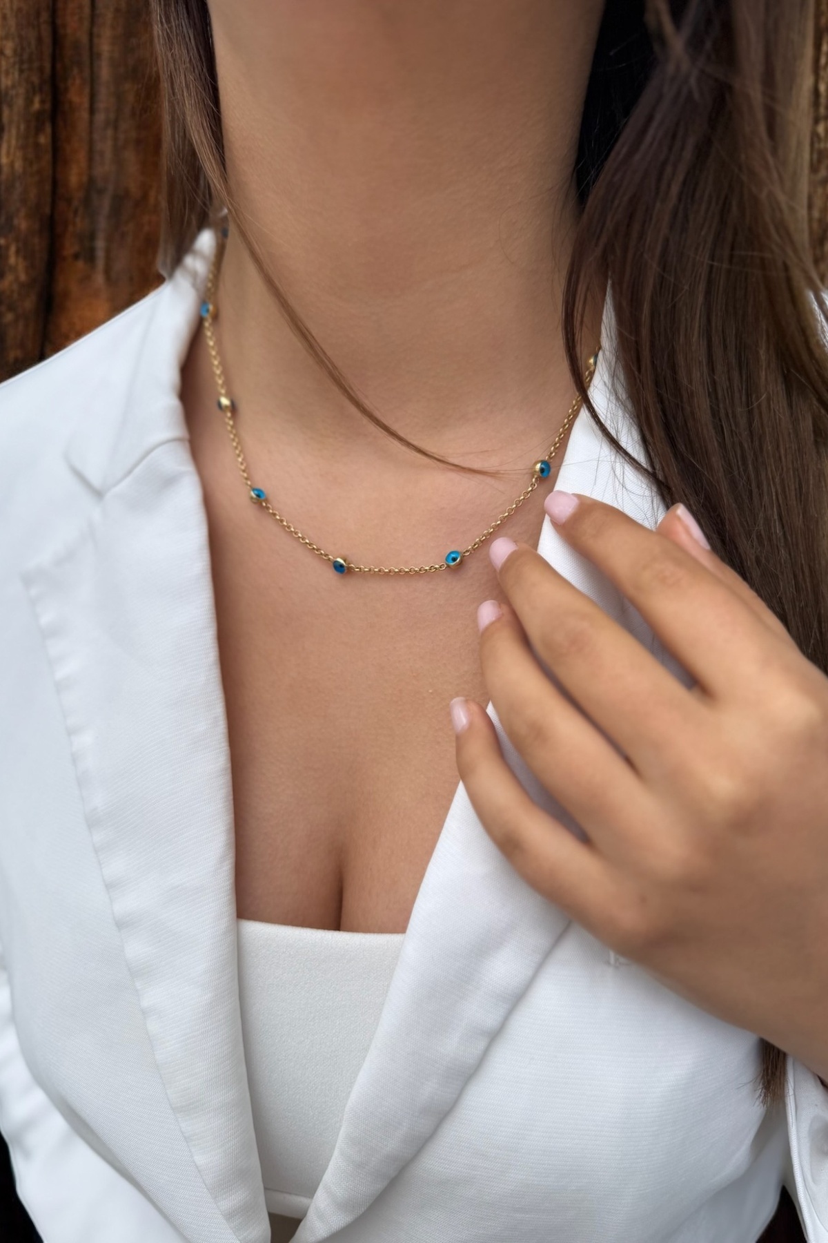 Kalemli Oval Nazar Boncuklu Gurmet ve Ataç Zincirli Işıltılı Kolye 14 Ayar Altın Kalemli Oval Nazar Boncuklu Gurmet ve Ataç Zincirli Işıltılı Kolye 14 Ayar Altın 14A3K48335 تک سایز