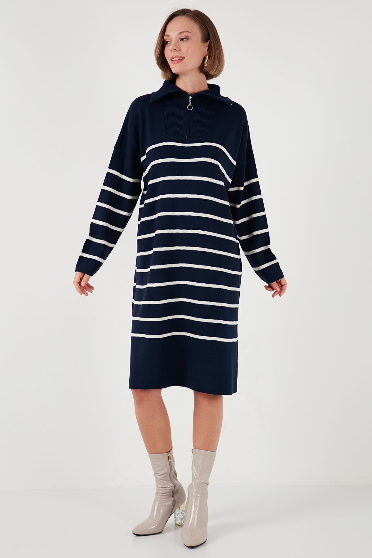 Polo Yakalı Fermuarlı Örme Midi elbise (Boy 95 cm ) Polo Yakalı Fermuarlı Örme Midi elbise (Boy 95 cm ) avnsE0078 2XL