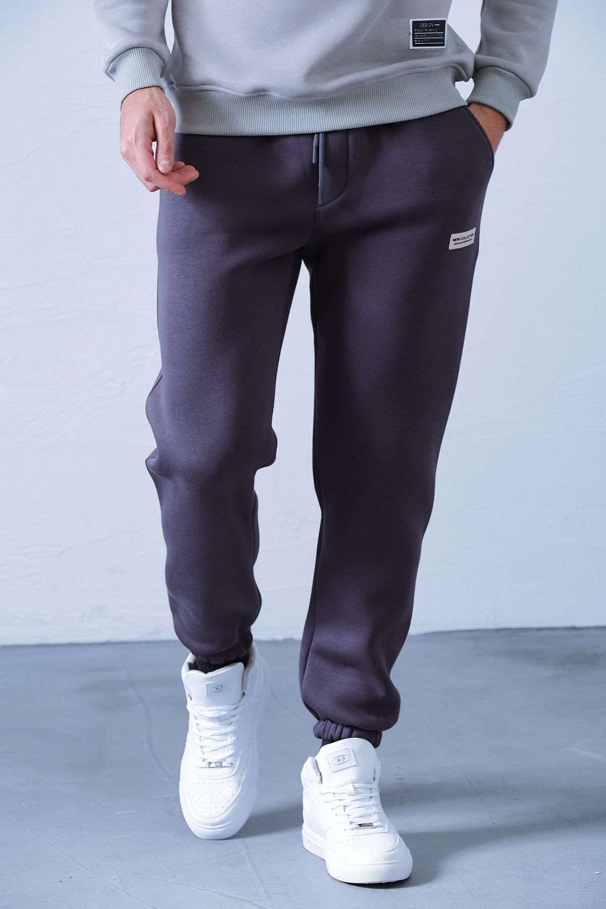 Erkek Gri Polar Kumaş Oversize Eşofman Altı Erkek Gri Polar Kumaş Oversize Eşofman Altı azs5569819 XL
