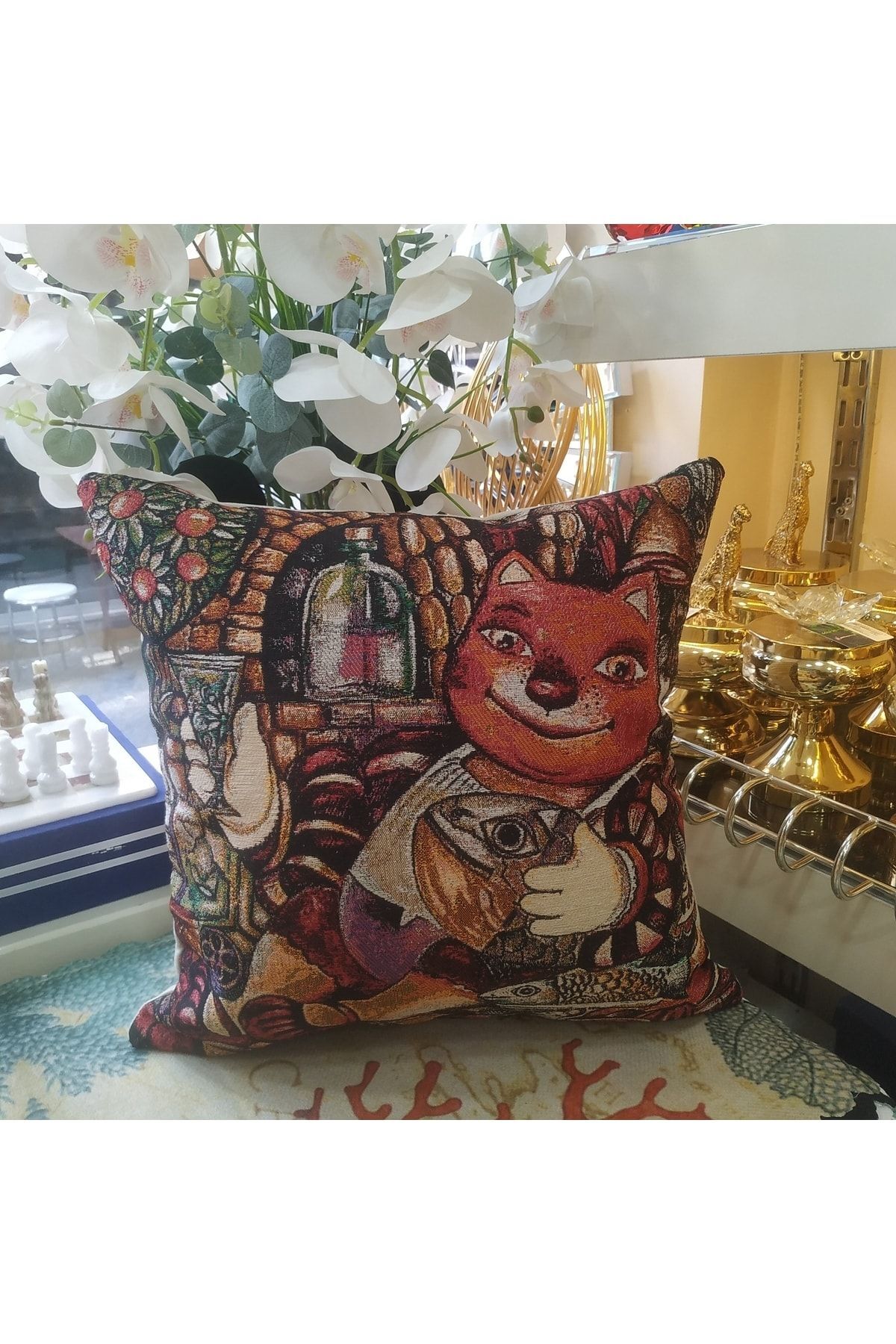 Turuncu Kedi Desen Goblen Kırlent Turuncu Kedi Desen Goblen Kırlent 20df-16326 40 x 40