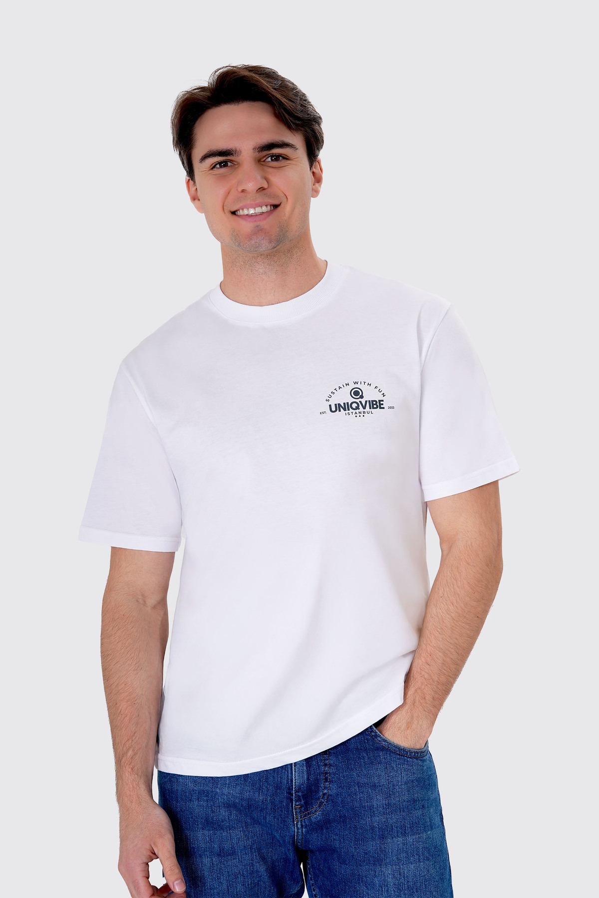 Tam Pamuklu Beyaz Regular Tişört Tam Pamuklu Beyaz Regular Tişört UNQ-S3 XL
