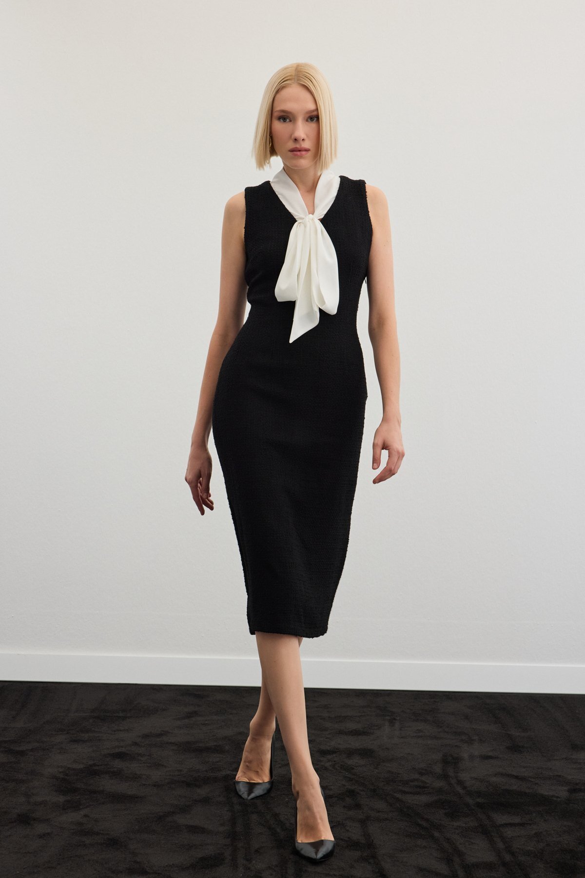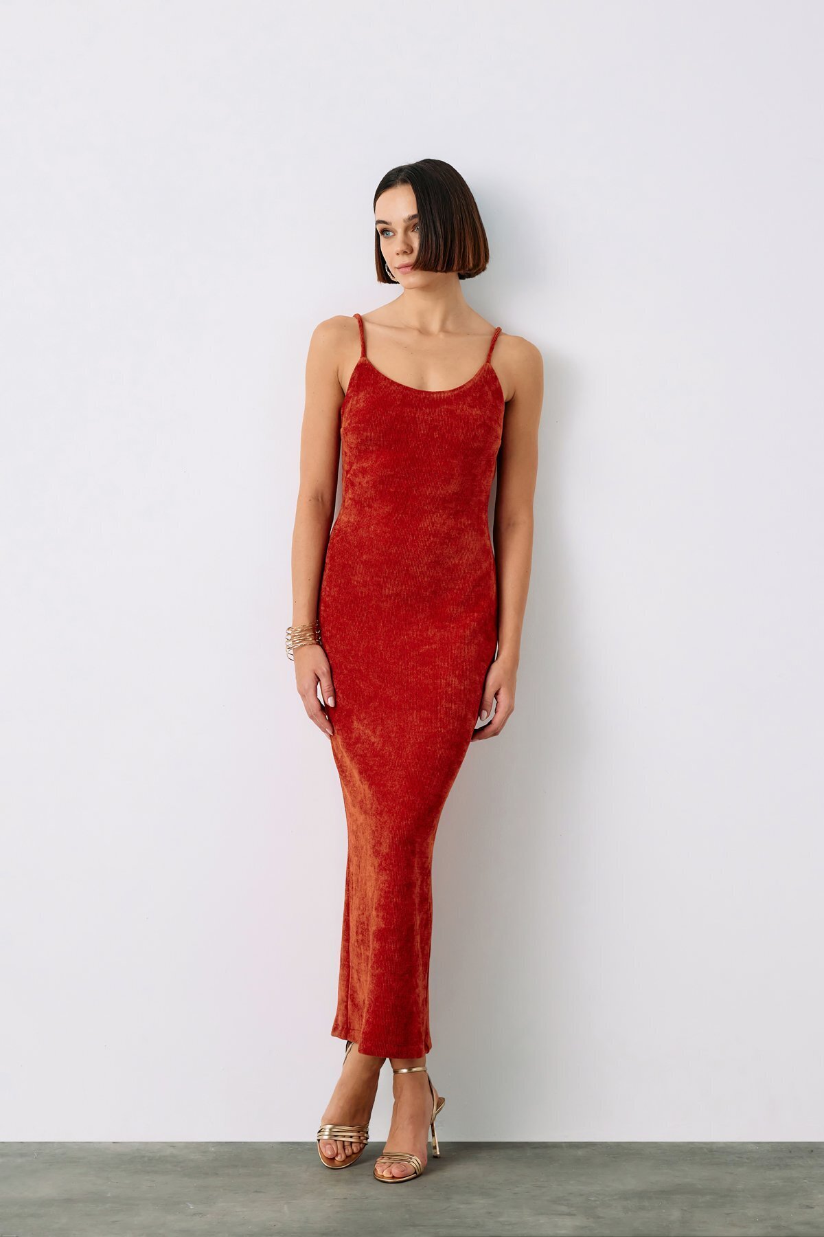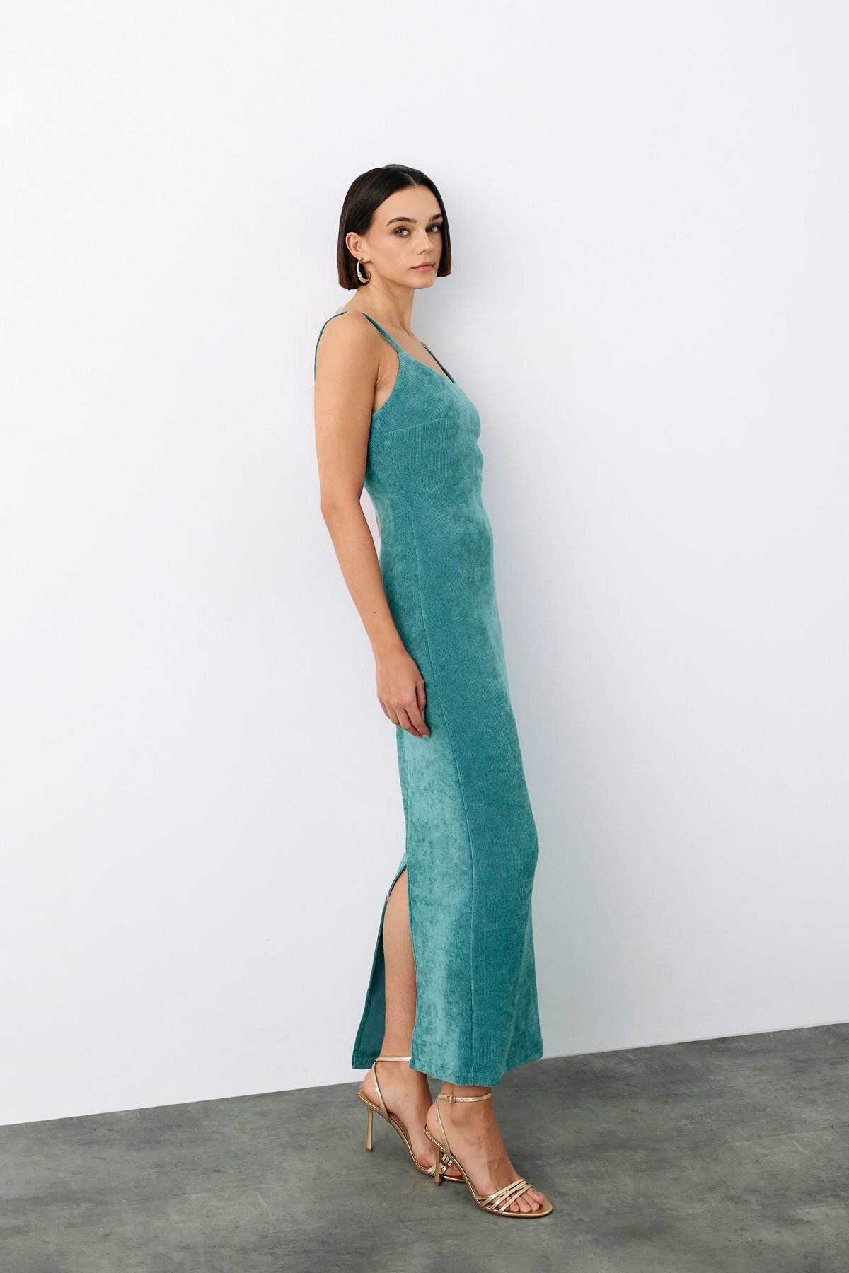 Askılı Kadife Midi Elbise - SİYAH Askılı Kadife Midi Elbise - SİYAH STN139KEL1294 42