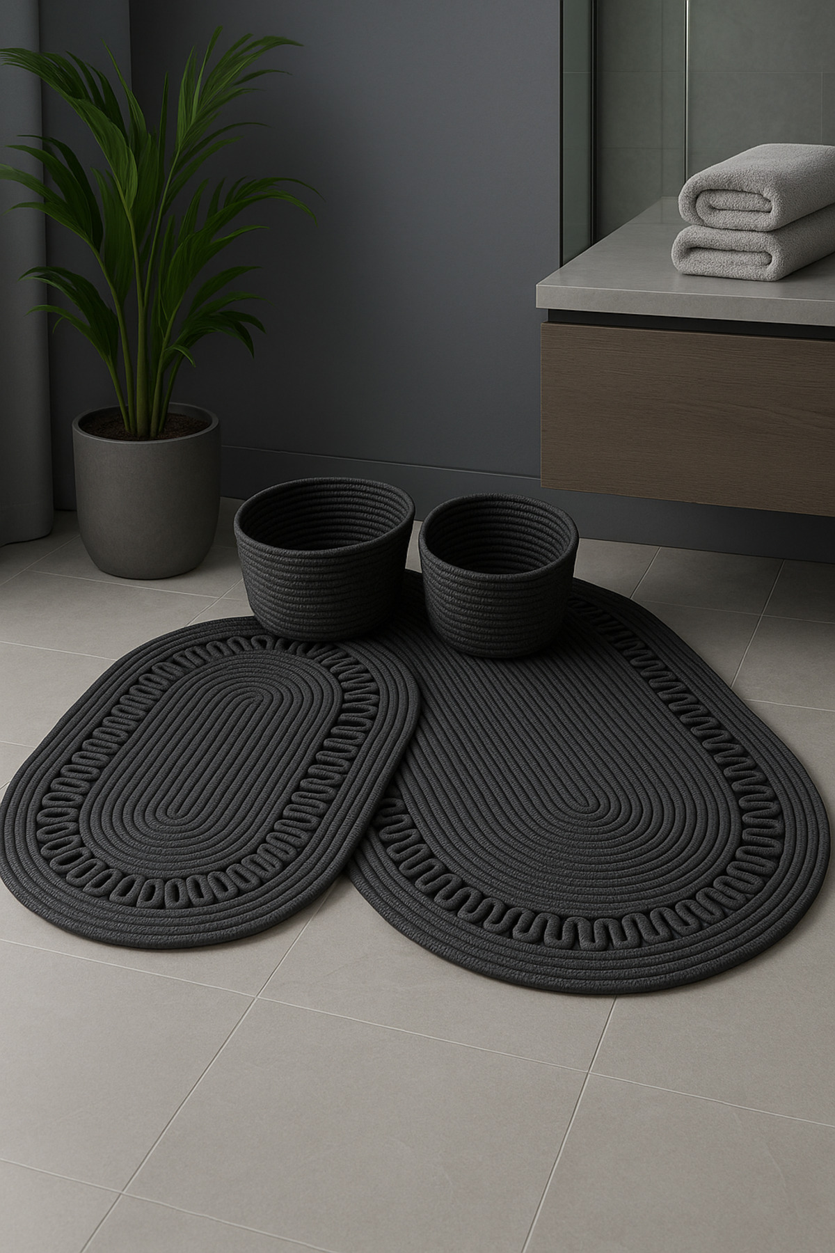 Barley Black 3'lü Set Banyo Halısı Djtbanyobanyo Barley Black 3'lü Set Banyo Halısı Djtbanyobanyo 8683264349836 تک سایز