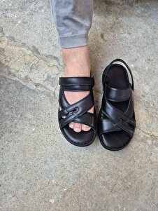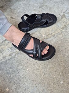 Hakiki Deri Siyah Kauçuk Taban Kaliteli Klasik Erkek Sandalet TG099521311015 Hakiki Deri Siyah Kauçuk Taban Kaliteli Klasik Erkek Sandalet TG099521311015 45