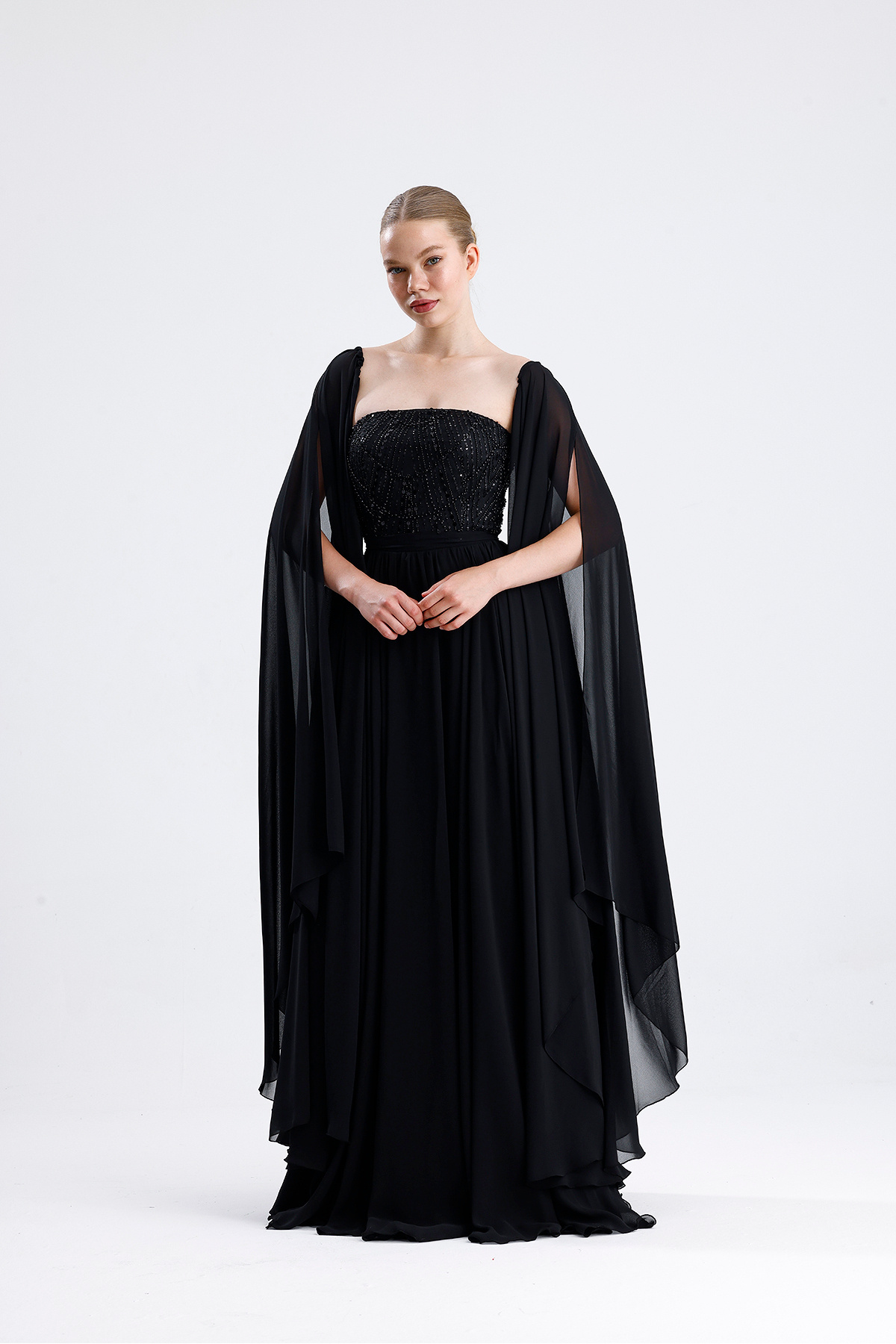 Çiçekli Maxi Siyah Kloş Elbise Çiçekli Maxi Siyah Kloş Elbise 27502957032 44