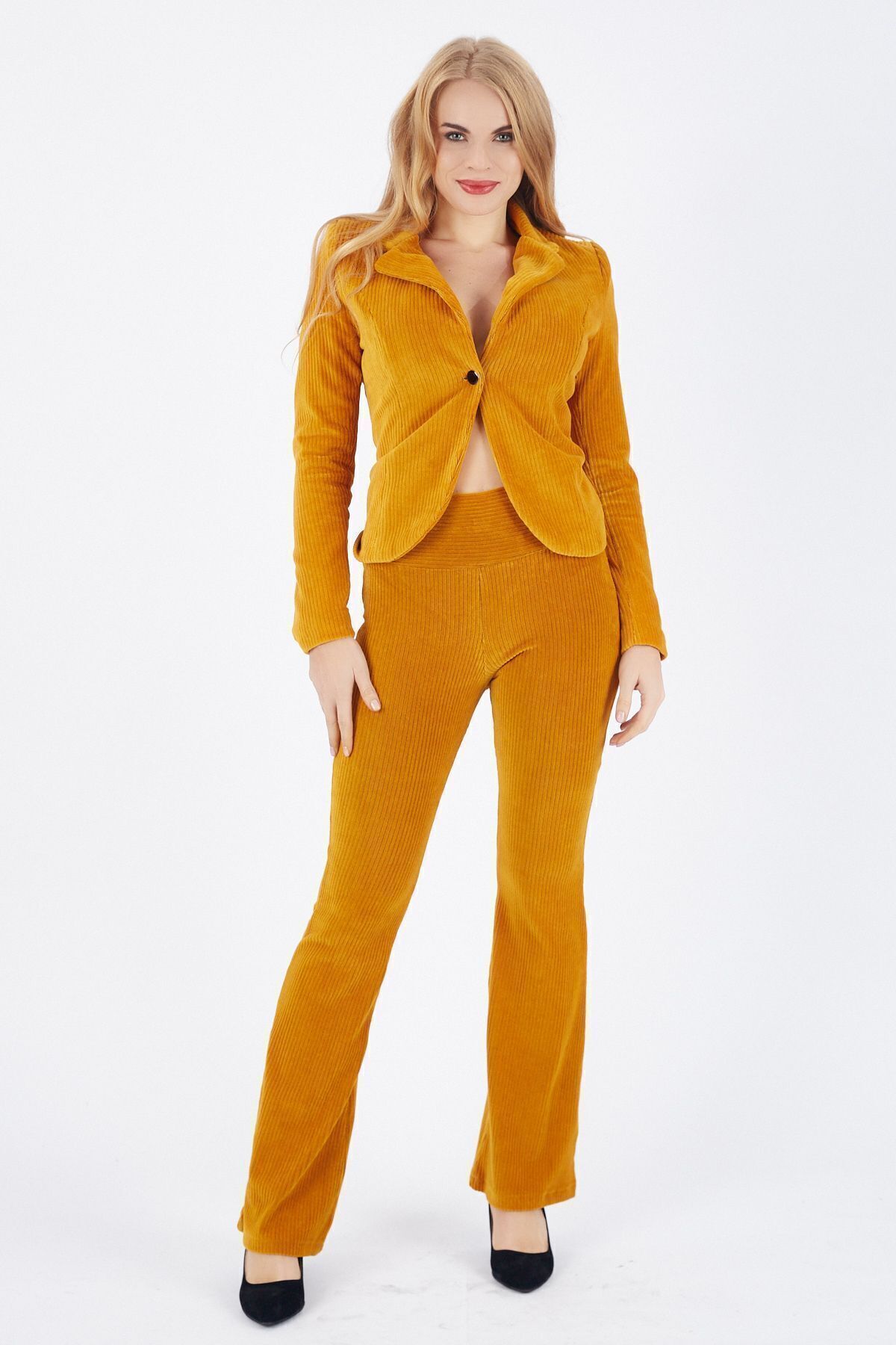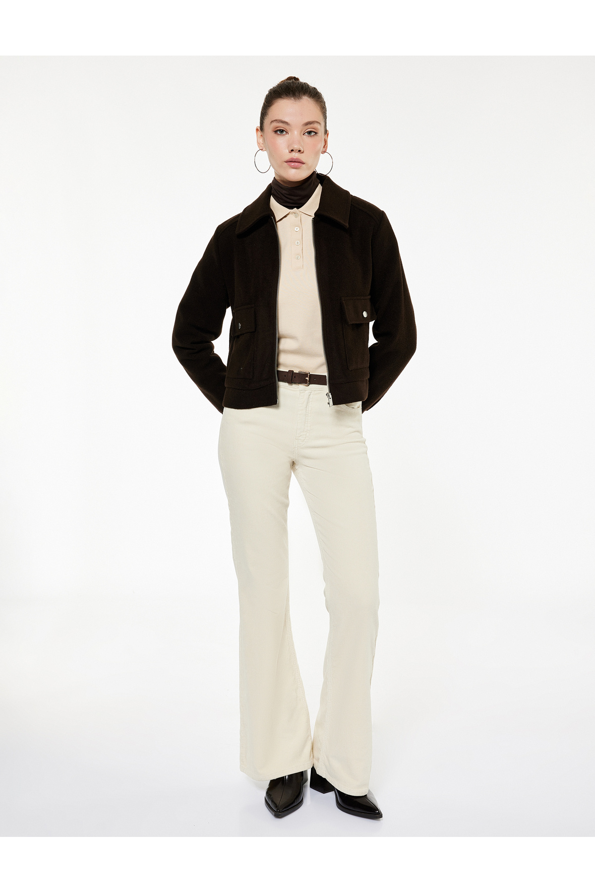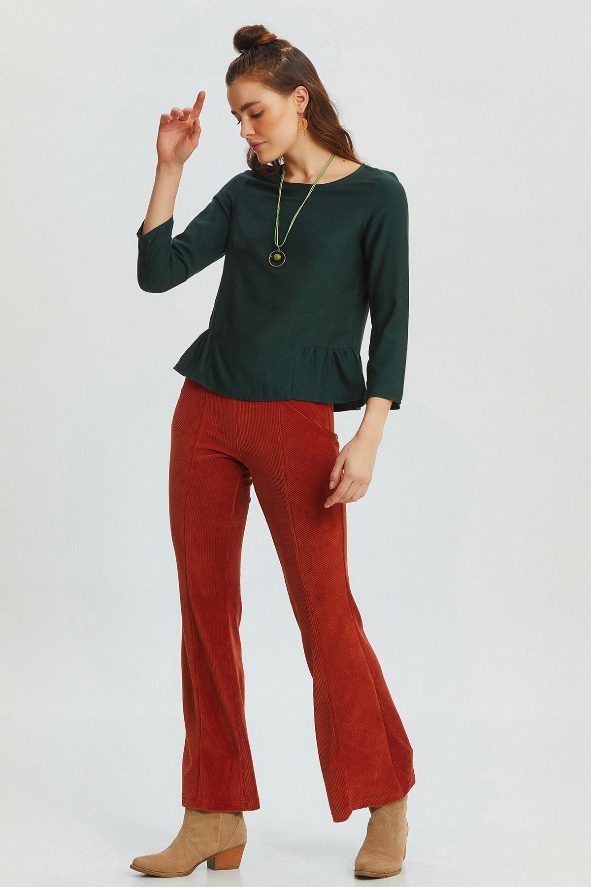 İspanyol Paça Yüksek Bel Fitilli Kadife Pantolon Taba İspanyol Paça Yüksek Bel Fitilli Kadife Pantolon Taba PT331 L