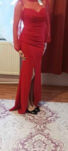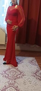 Kadın Kırmızı Balıkçı Yaka Tül Detay Yırtmaçlı Büyük Beden Maxi Abiye Elbise Kadın Kırmızı Balıkçı Yaka Tül Detay Yırtmaçlı Büyük Beden Maxi Abiye Elbise Wc582767 3XL